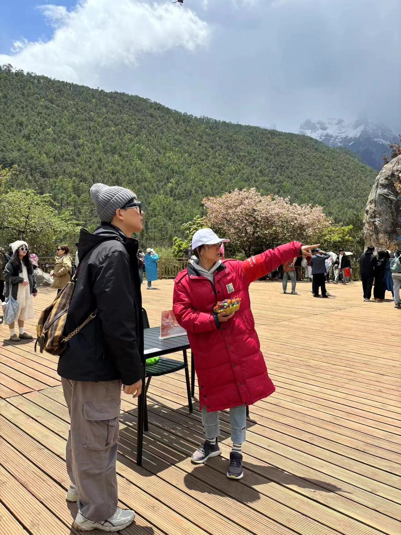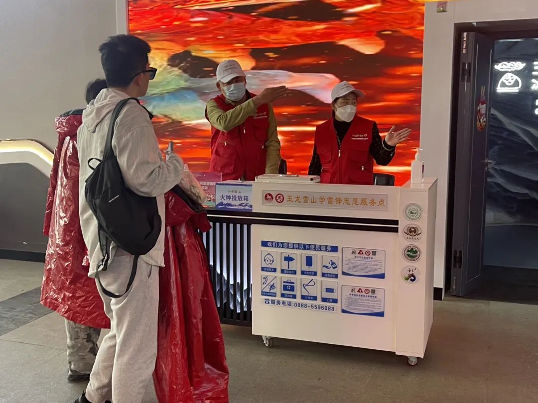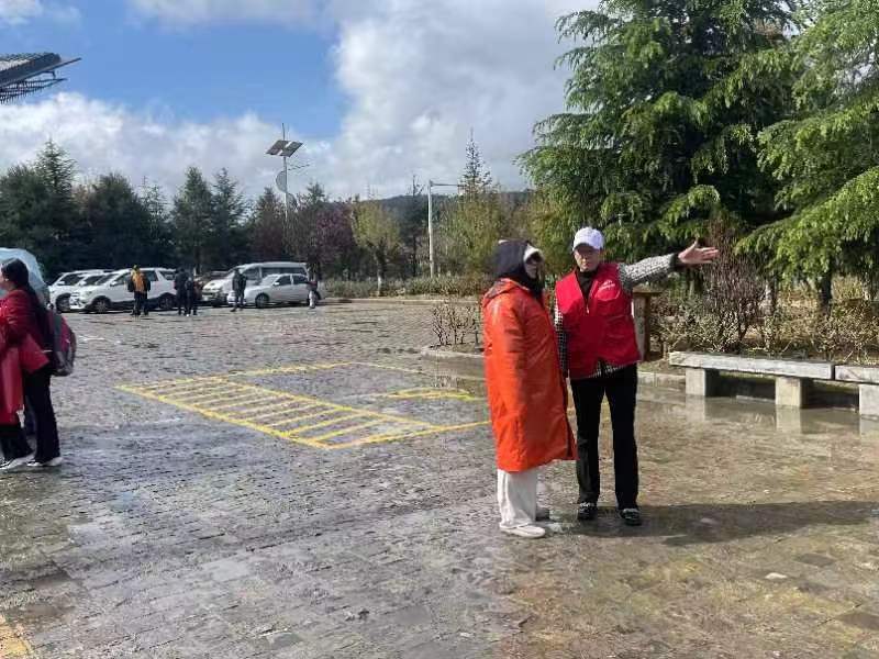 玉龙雪山景区处处闪耀着“志愿红”的身影,他们用贴心周到的志愿服务礼迎八方来客,展现了景区良好形象,赢得了游客的纷纷点赞,构成了一道靓丽的风景线。