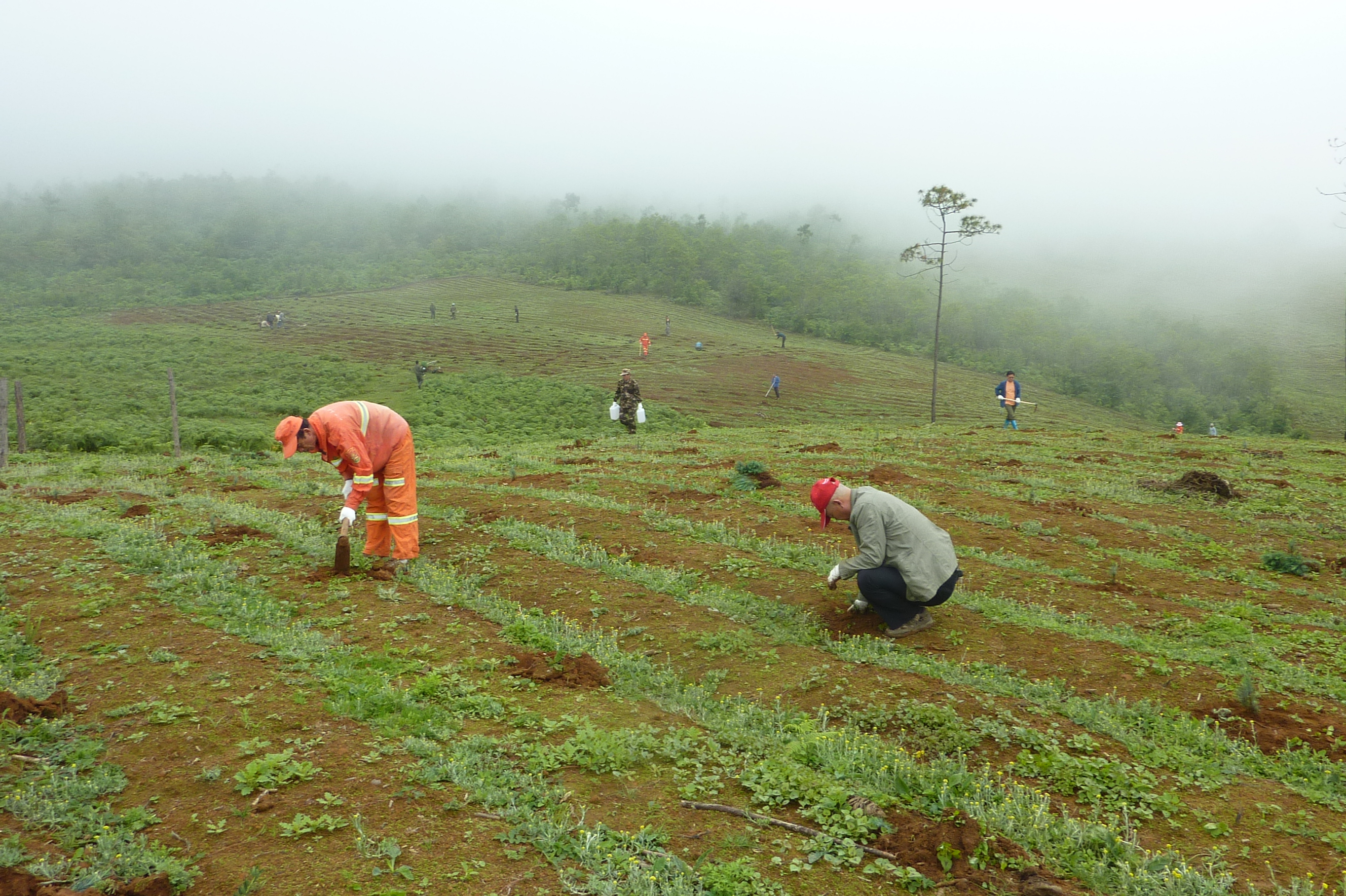 第一年活动选定的地块,位于玉龙县境内玉龙雪山风景区东面林区建新林场旁,海拔3060米,植树面积为50亩。