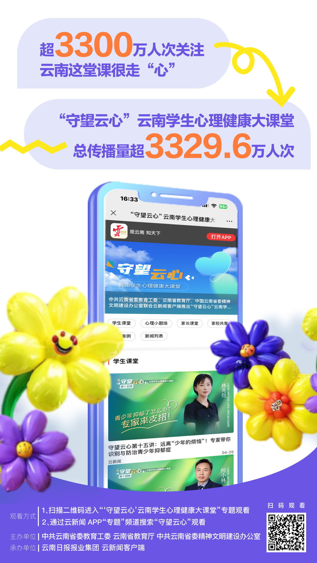 1、扫描二维码进入“‘守望云心’云南学生心理健康大课堂”专题观看;