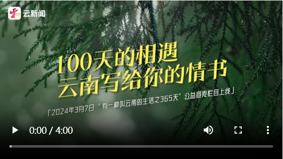2024年3月7日,“有一种叫云南的生活之365天”公益宣传融媒体栏目上线,100天来,每一个早晨,我们与您如约而遇,一声温暖的问候、一句美好的祝福,带来一天的好心情。