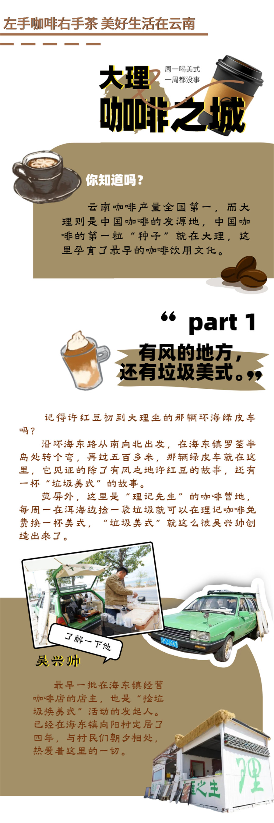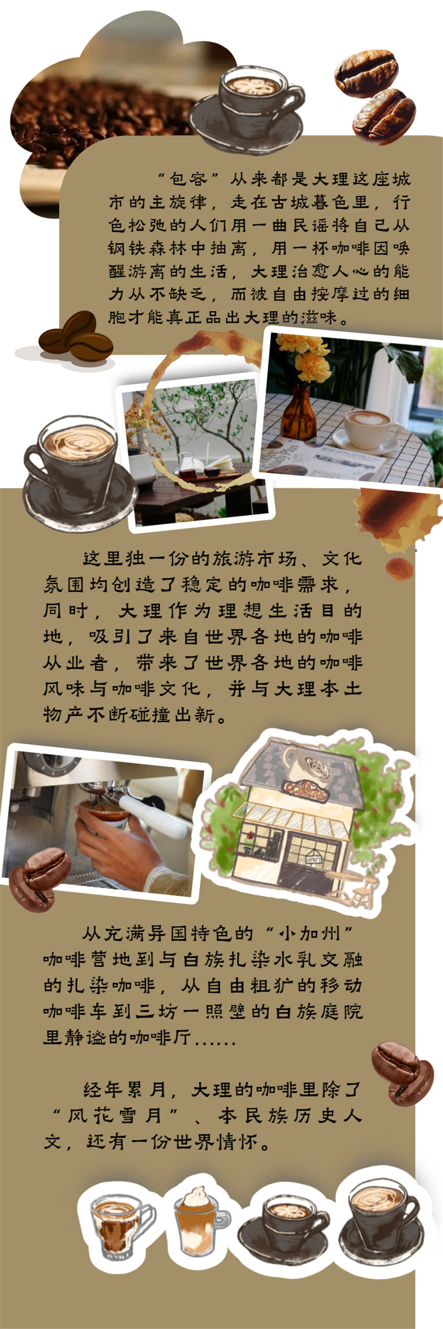 如今,源源不断的“新大理人”,来到大理、爱上大理、定居大理。而咖啡在大理也不再只是一杯休闲饮品,更成了一种无声的语言,寄托着大理人和“新大理人”不同的想法和人生感悟,并在这片土地上悄然碰撞滋生出新的文化内涵。