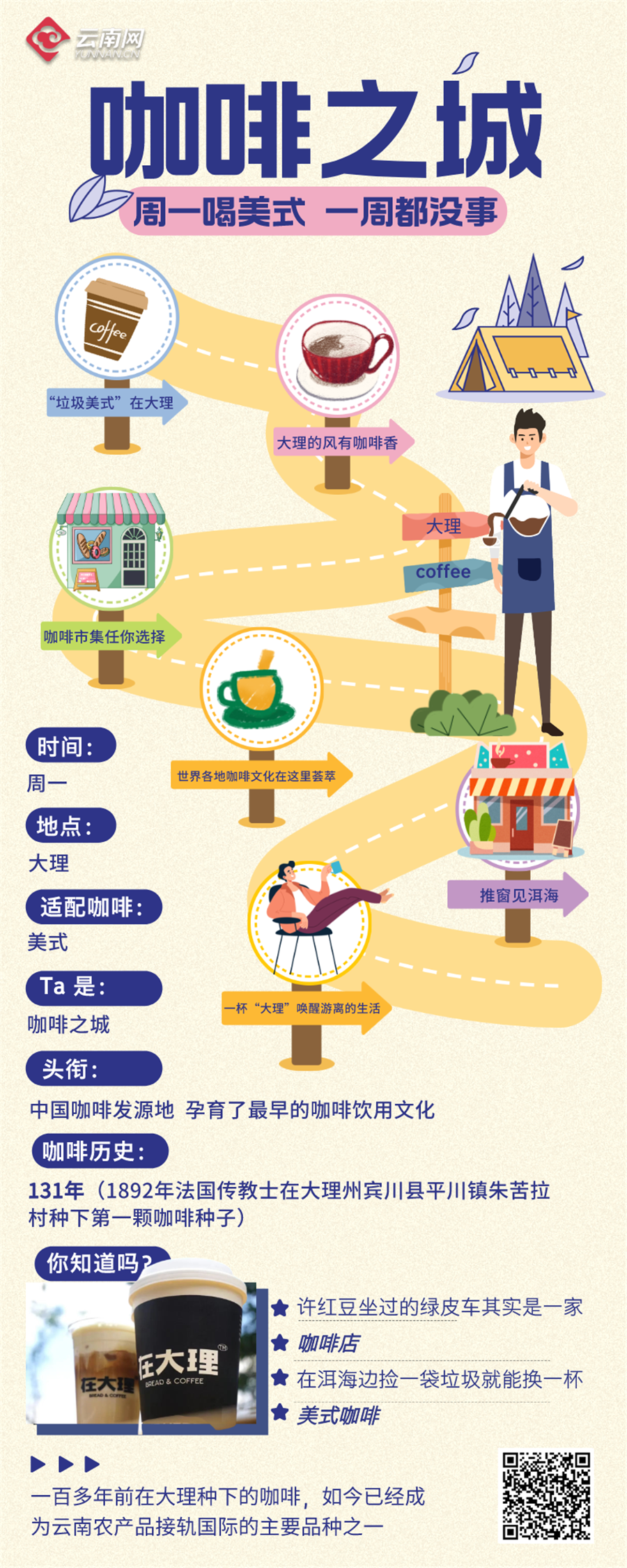 去年八月,大理州人民政府印发了《大理州建设咖啡之城三年行动计划(2023—2025年)》,全面揭开了建设咖啡之城三年行动计划的序幕。大理州出台一系列扶持咖啡产业发展壮大的配套政策,聚集咖啡技能人才,培育“咖啡+非遗”“咖啡市集”“景区咖啡车”等多元业态,结合本地特色打造文旅融合、产业配套的“咖啡之城”。