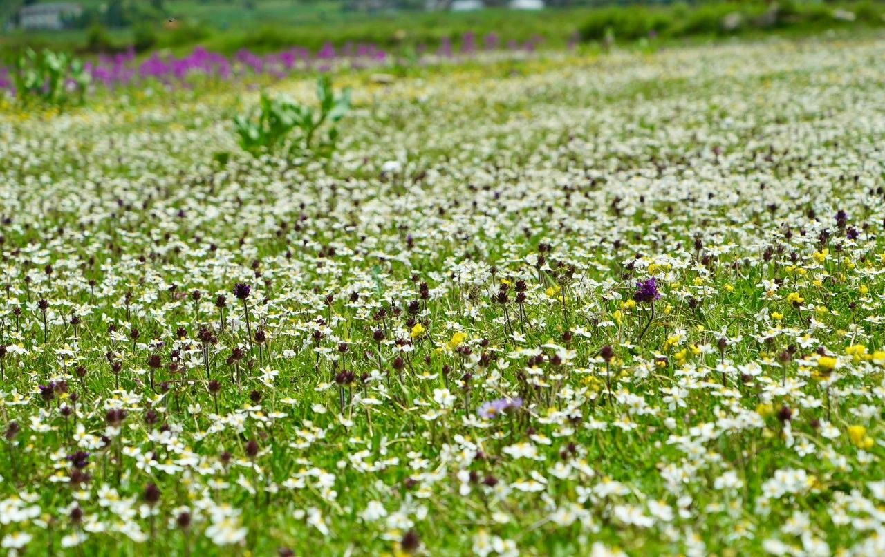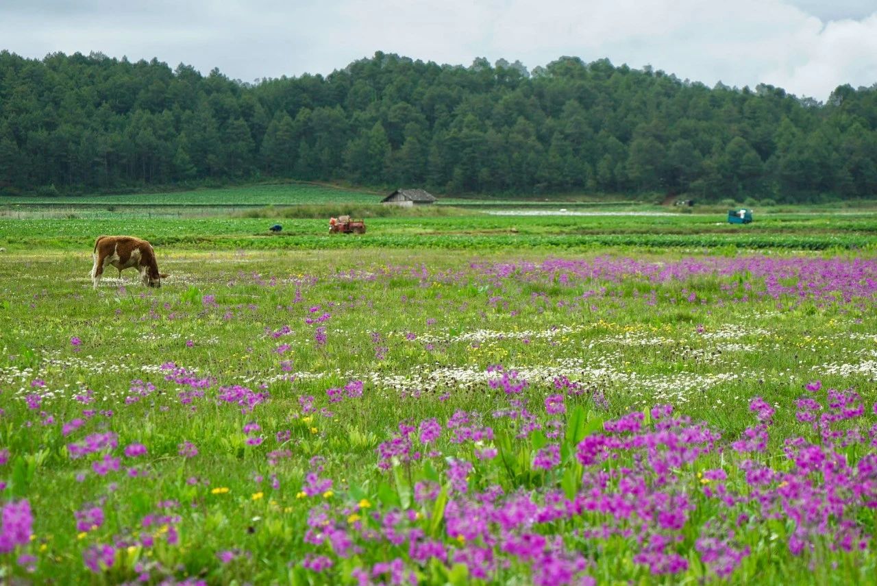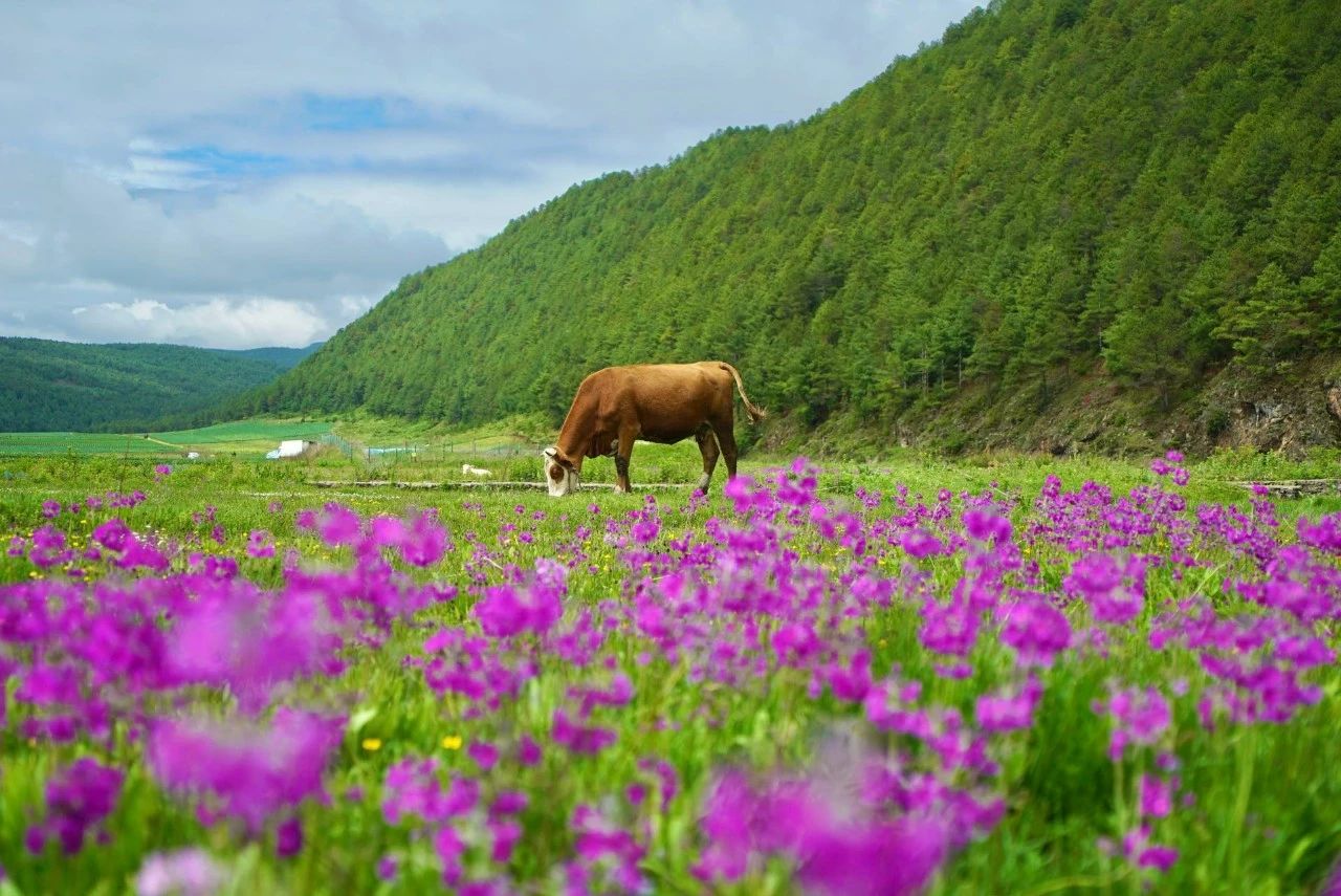 目前,有丽江“空中花园”之称的南溪村迎来最美季,这里草甸茵茵,牛儿成群,各色花儿盛开,犹如一个世外桃源。