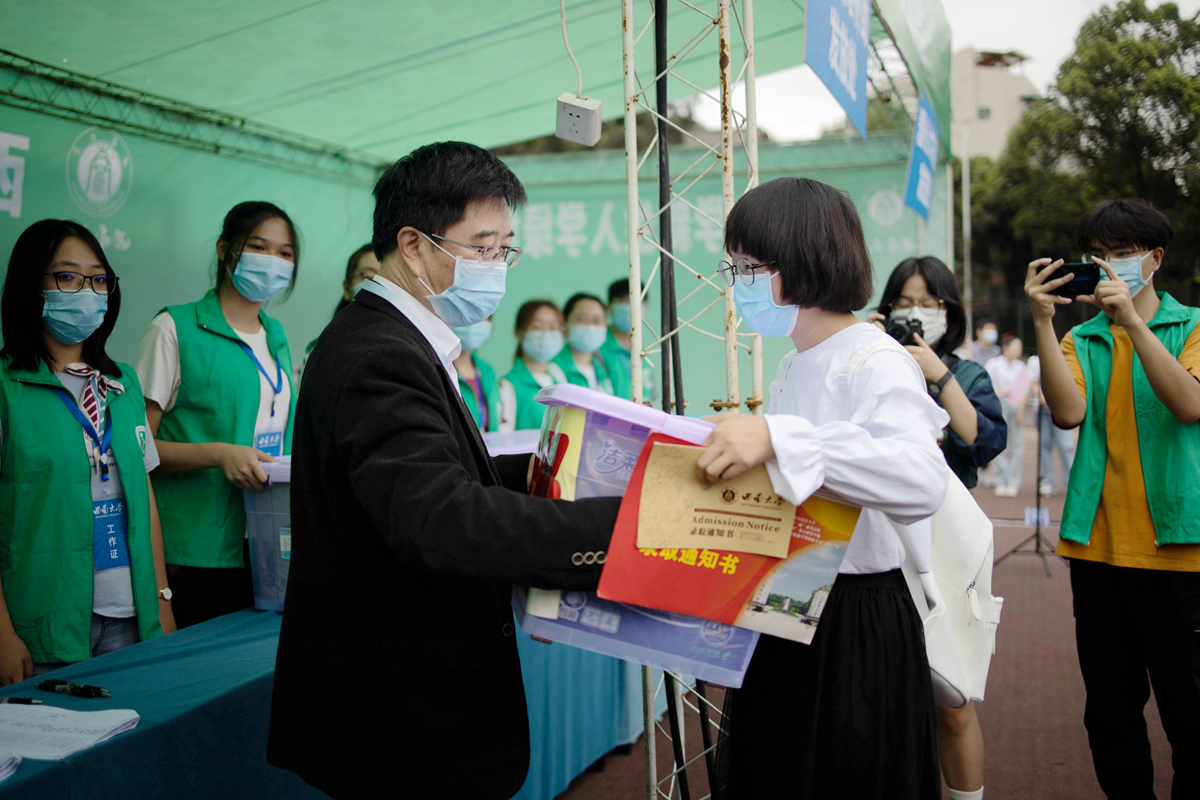 她在大学里聆听的“第一堂课”就是来自时任西南大学党委书记李旭锋“希望你日后能成大才”的祝福,还有一份“爱心助学大礼包”。