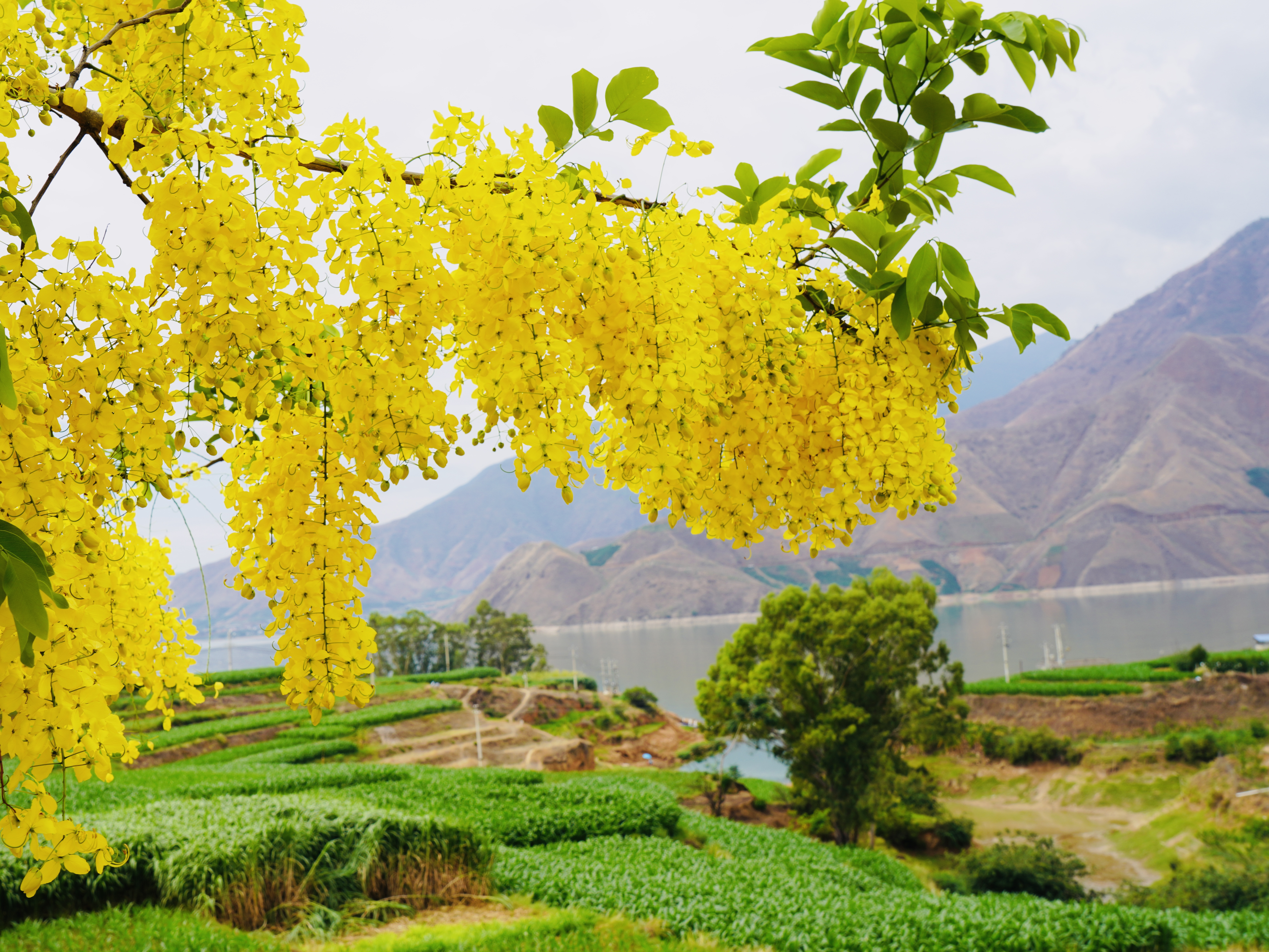 六月的永胜涛源,已然成为黄金雨花的海洋。在小镇的道路两侧,随处皆可看到绽放的黄金雨花。