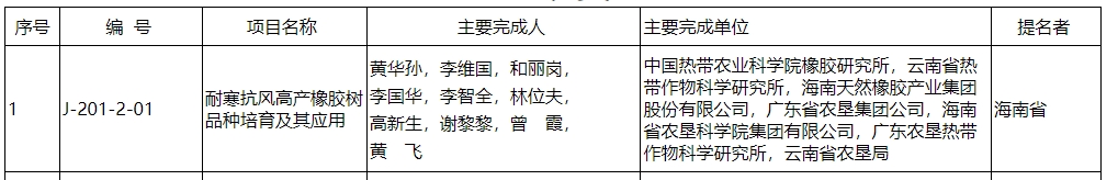 该项目由中国热带农业科学院橡胶研究所,云南省热带作物科学研究所,海南天然橡胶产业集团股份有限公司,广东省农垦集团公司,海南省农垦科学院集团有限公司,广东农垦热带作物科学研究所,云南省农垦局主要完成。项目历时37年,攻克了天然橡胶种质资源匮乏、育种周期长效率低等难题,培育突破性新品种,研发高效生产技术,取得创新性成果。项目育成品种覆盖我国植胶面积的39.7%,新增产值252.1亿元,社会经济生态效益显著。