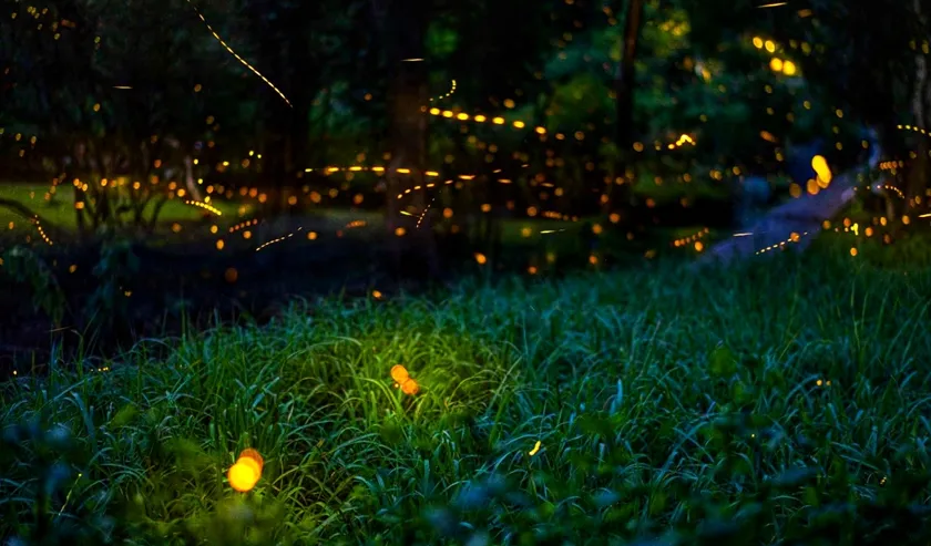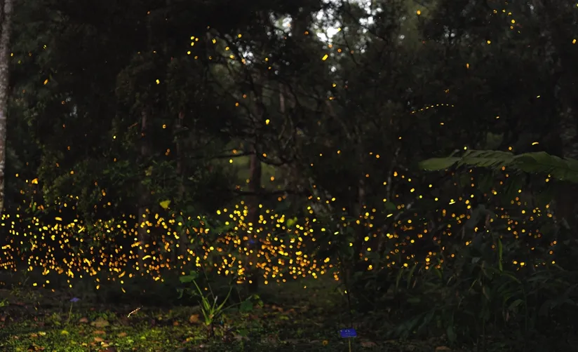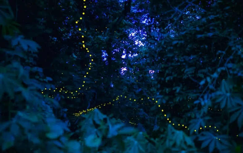 中国科学院西双版纳热带植物园中流萤飞舞。张娇娇 摄