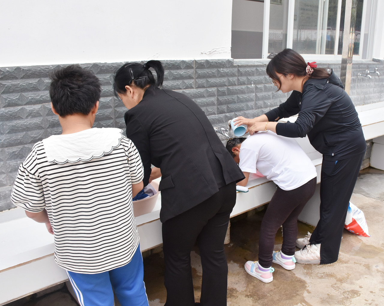 “先把衣服用水浸湿,然后再放洗衣粉。这里是袖口,要多揉一下才能洗干净”“你喜欢什么样的发型,老师帮你扎”……帮学生整理床铺、教学生洗衣服、帮学生洗头、教低年级女生扎头发等,党支部把爱作为特殊教育的精髓,引导鼓励党员教师带头讲奉献,党支部党员用行动诠释着对孩子们的爱。