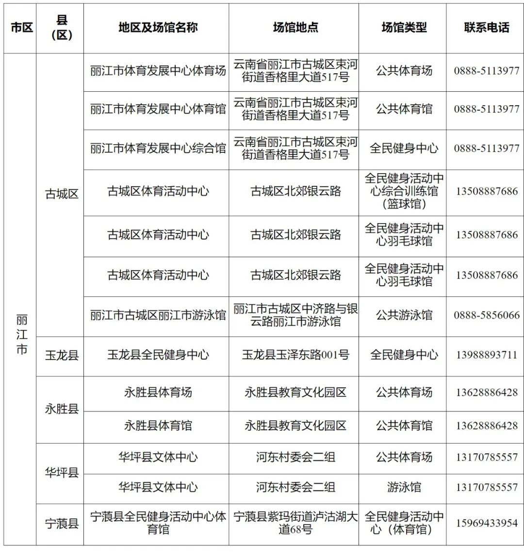 2024年丽江市公共体育场馆免费或低收费开放服务