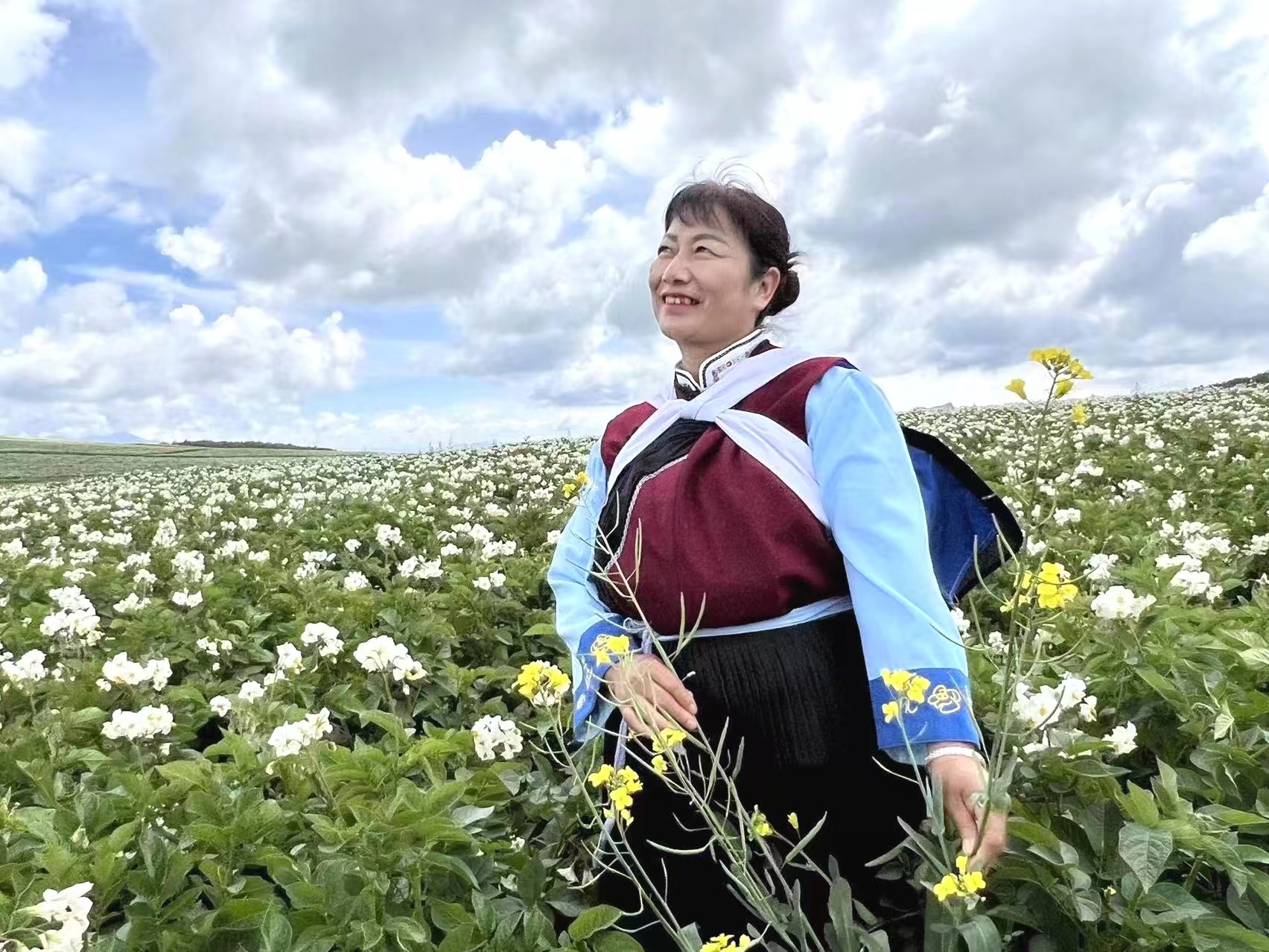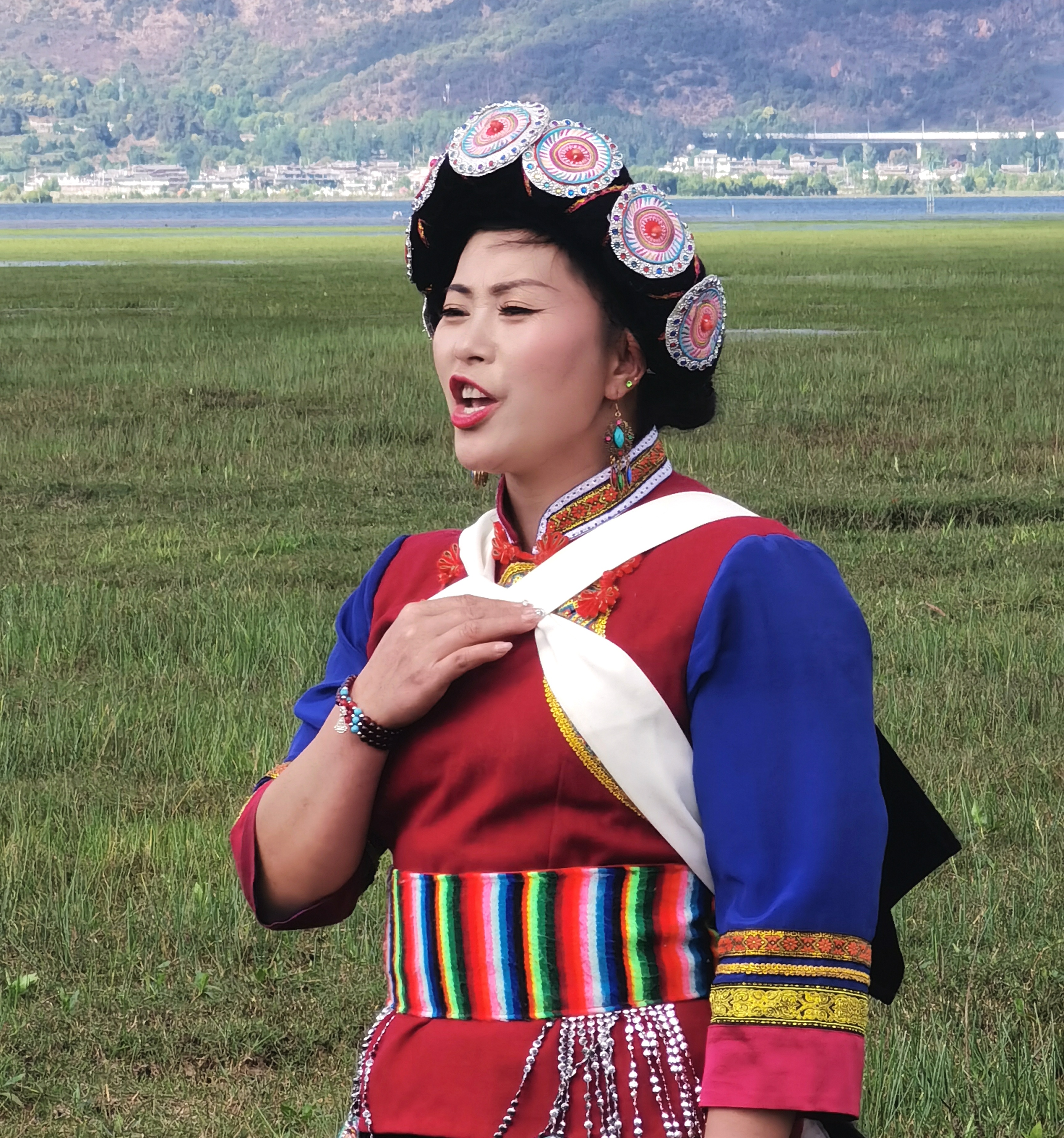 “夏阿姨”李丽芳,来自纳西文化古都白沙古镇,她从小喜爱唱歌跳舞,酷爱民族音乐,16岁时走进玉水寨,先后师从李永光、和茂根等多位老师学习白沙细乐、洞经音乐及勒巴舞,从事民族文化艺术工作已25年。她不仅热爱学习还乐于教人,培养了一批非遗传承人,到文林村、清溪村等古乐队教授白沙细乐,在古城区老年大学任教三年白沙细乐课,是丽江优秀民间艺人。为了自己的音乐梦想,李丽芳到接风楼边工作边学习,终于等到了登台的机会。在和文光老师为她打造的《夏之歌》中更展现其才华与技艺令人钦佩,她的内心充满爱与向往,始终走在传承民族文化的路上。