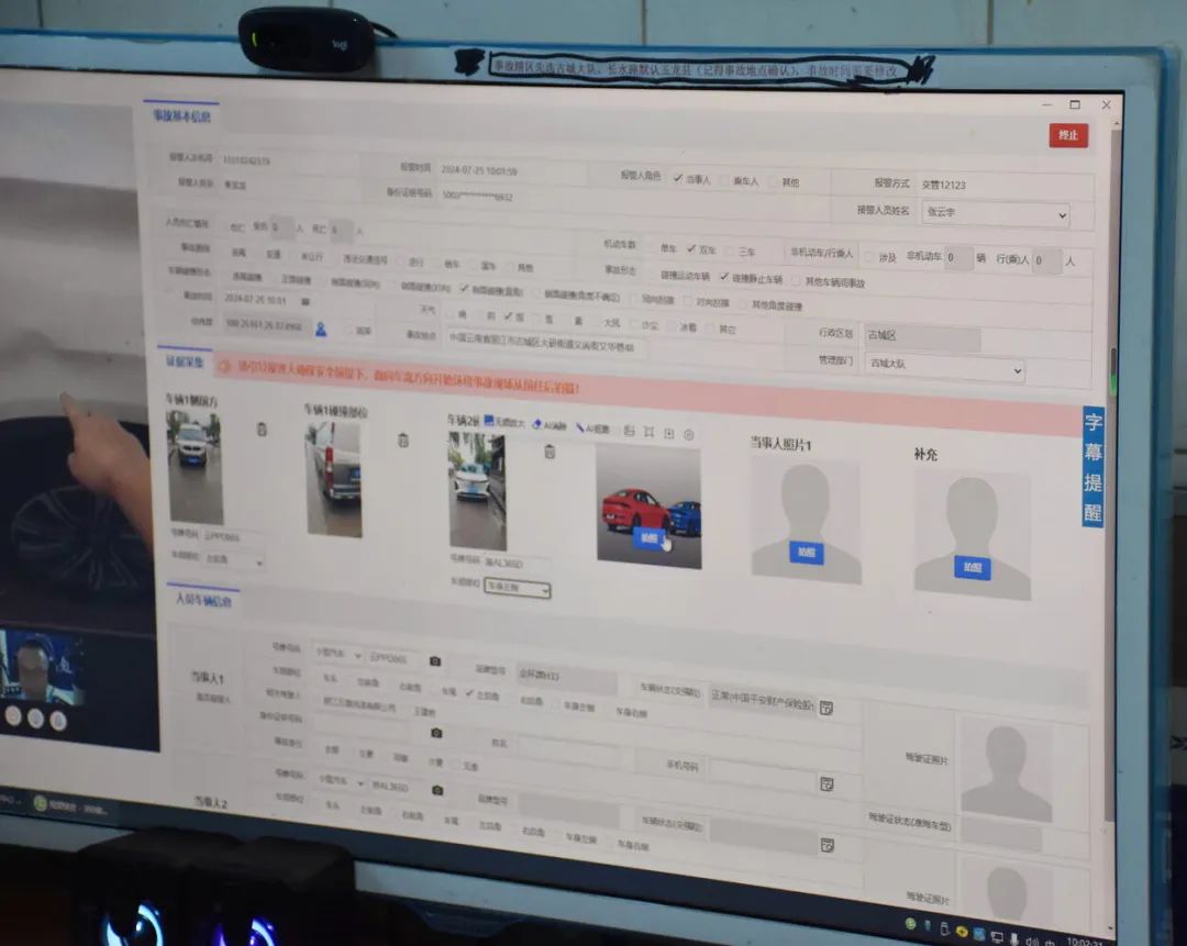 “您好,这里是丽江市公安局古城分局交通警察大队事故一中队视频快处处,您的车辆发生了什么事故?是否有人员受伤?”“没有人员受伤,我的车子停在路边被其他车子刮蹭到了!”“好的,接下来我们通过视频快处功能为您进行处理,请您翻转镜头拍摄您的车辆受损位置。”丽江市公安局古城分局交警大队事故一中队指导员钏文潇正在通过视频通话指导事故车辆车主进行视频快处。