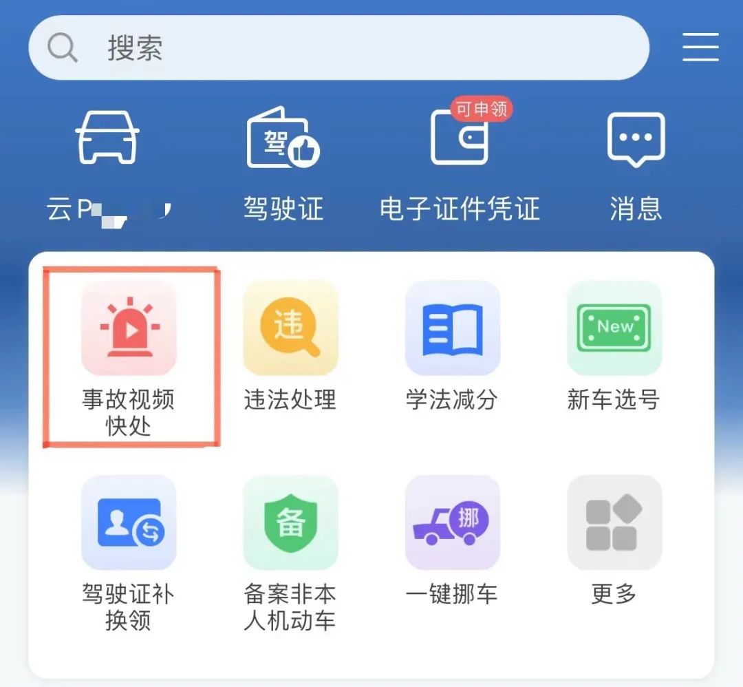 “交管12123”APP事故视频快处模块。(截图)