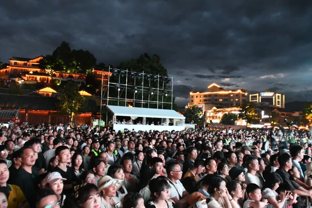 8月9日晚,2024丽江民谣音乐季启动仪式在丽江古城玉河广场举行。(潘杨劲松 摄)