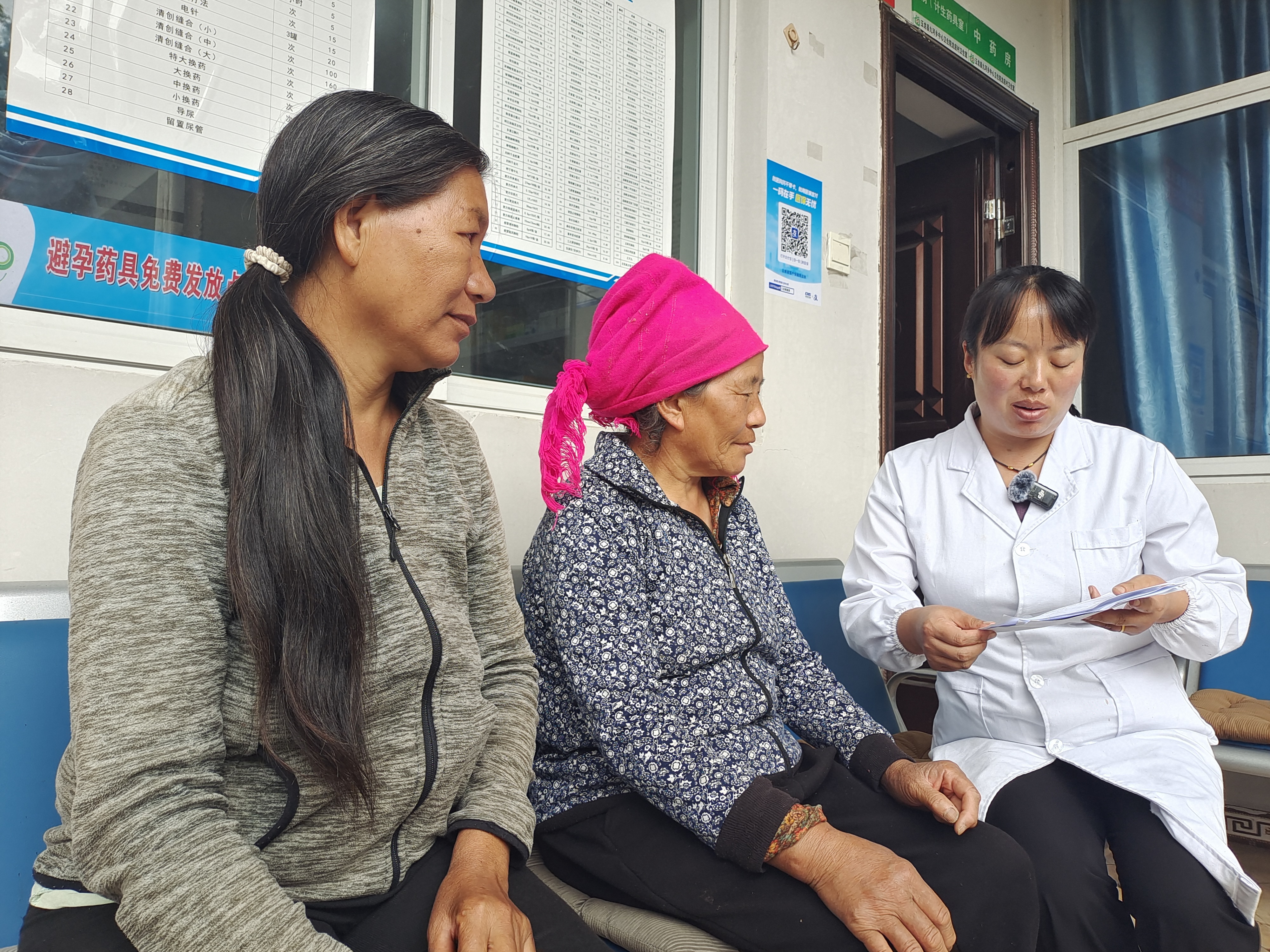 9月6日,九河乡龙应村卫生室医生李凤燕正在为村民看病。(张坤 摄)