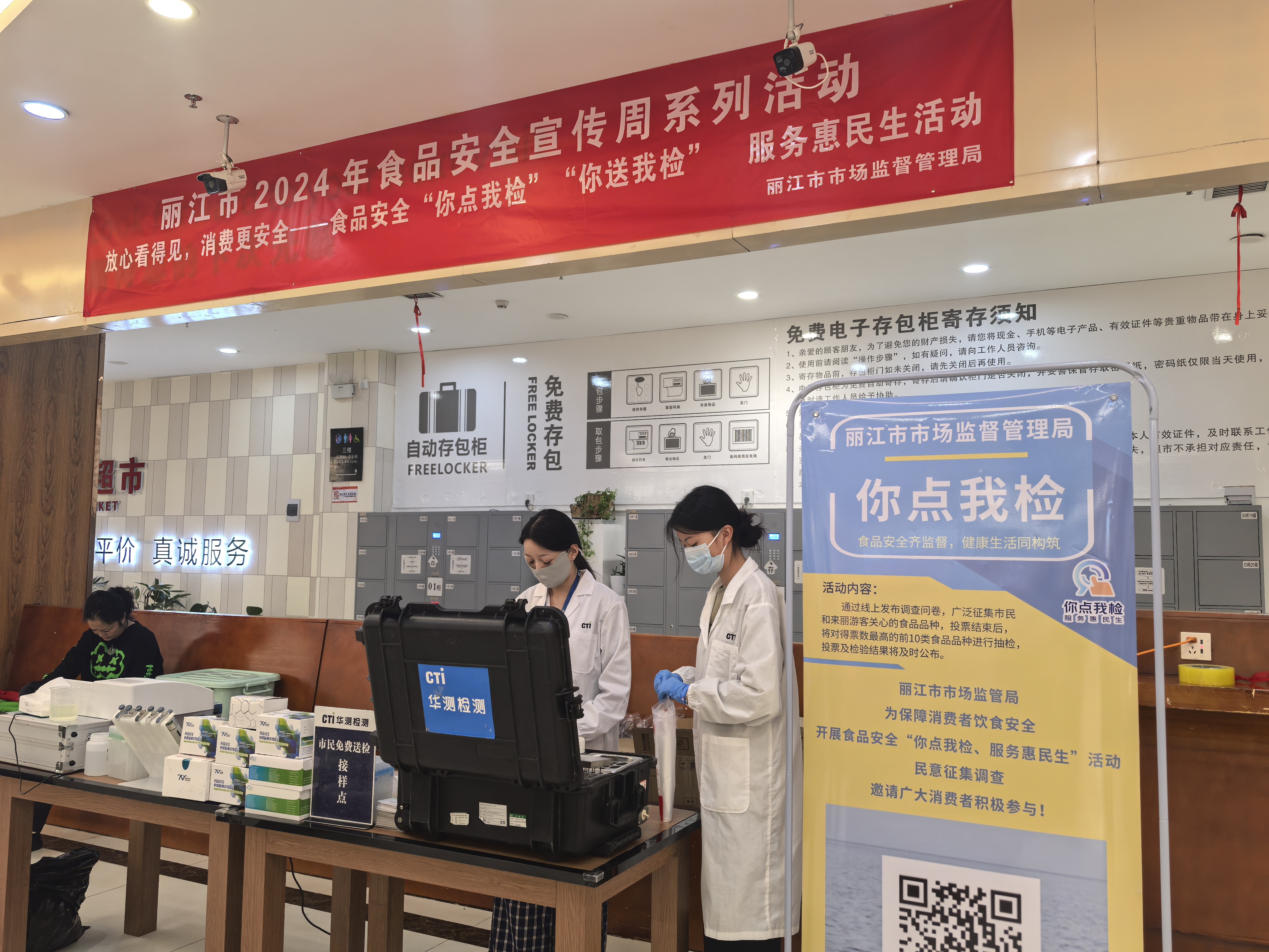 9月12日,在丽客隆超市大研广场店,市市场监督管理局的工作人员正在开展食品安全“你点我检”“你送我检”服务惠民生活动。消费者从超市购买产品以后,将需要检验的产品提交到检验处,市市场监督管理局的工作人员现场将其进行检验,10分钟就能出结果,如果有检验不合格的产品,将立即责令相关企业整改。