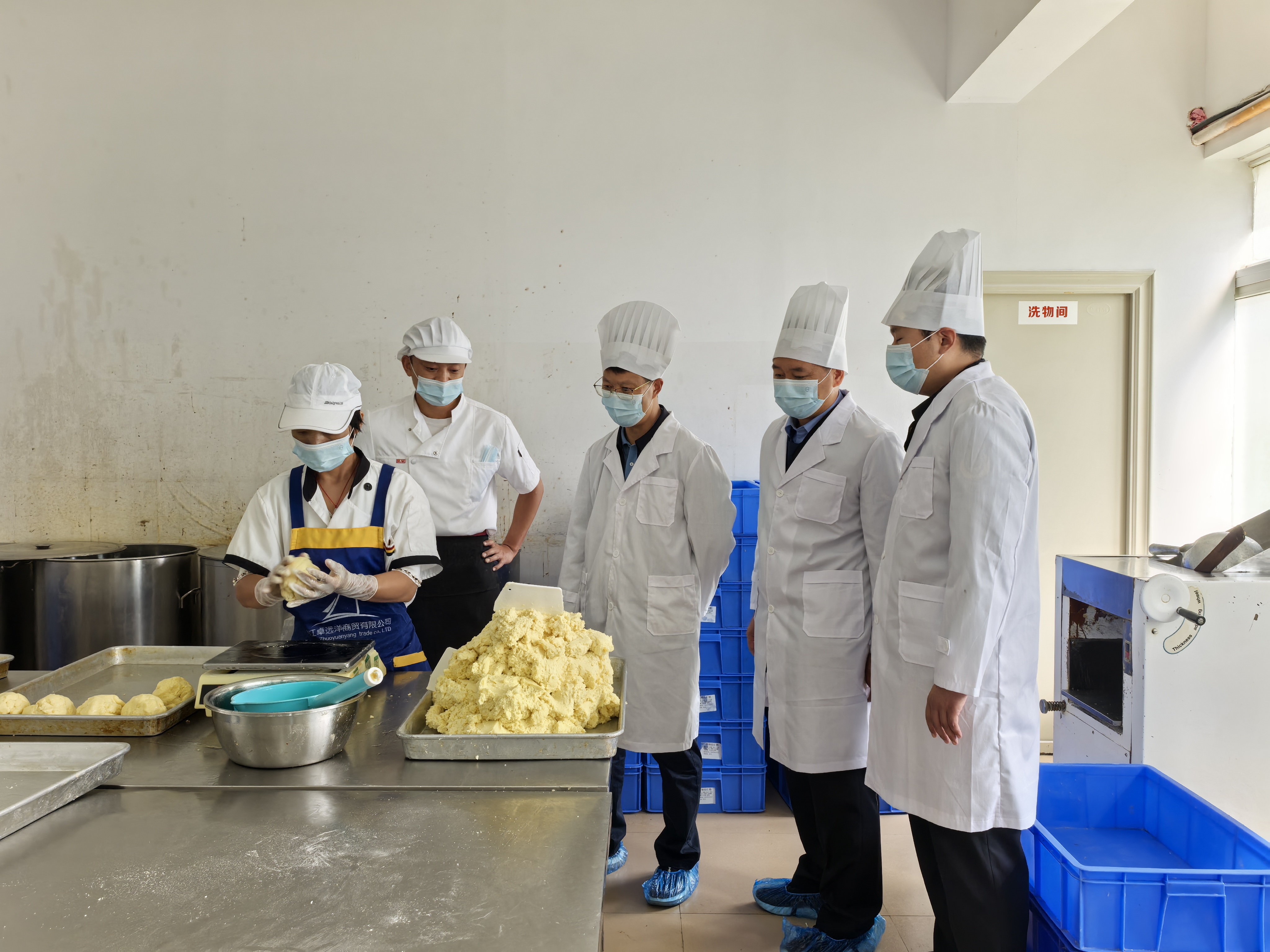 在月饼生产企业检查组对月饼生产流程进行检查。(秦文静 摄)