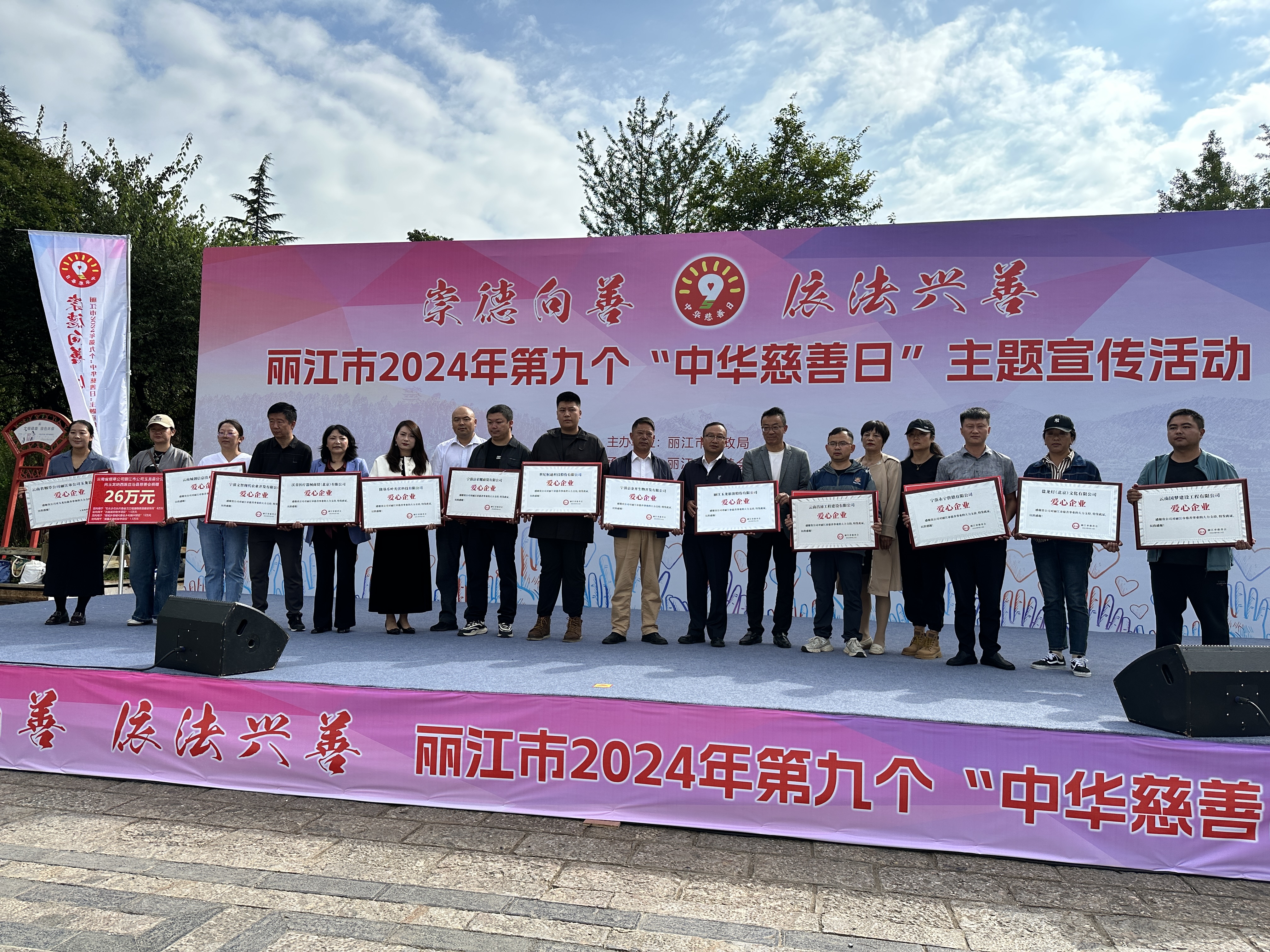 9月14日,丽江市2024年第九个“中华慈善日”主题宣传活动中,主办方为爱心企业授牌。(罗蓉 摄)