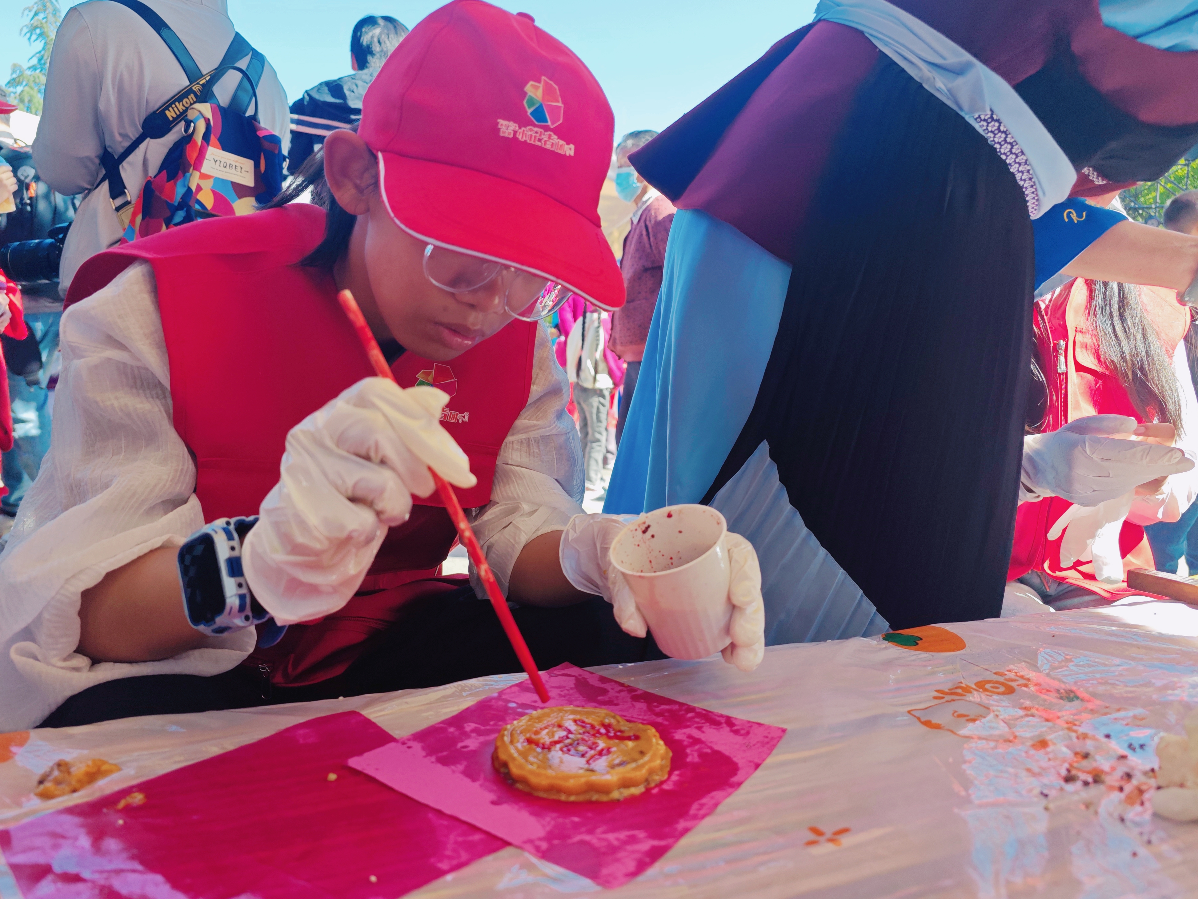 ▲9月15日融媒小记者在“行走的思政课”现场学习做月饼。(左林珏 摄)