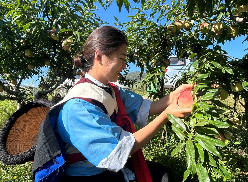 在玉龙县拉市镇普若村,记者见证了这一份来自大自然的馈赠如何转化为村民们实实在在的收入。走进村民和冠华家的桃园,只见一家人正忙碌地穿梭于桃林间,脸上洋溢着丰收的喜悦。一颗颗硕大饱满、色泽诱人的雪桃挂满枝头,根据预订的订单,新鲜采摘的雪桃随即被快递的货车接走,确保了这份来自高原的甜蜜能够迅速送达全国各地消费者的手中。