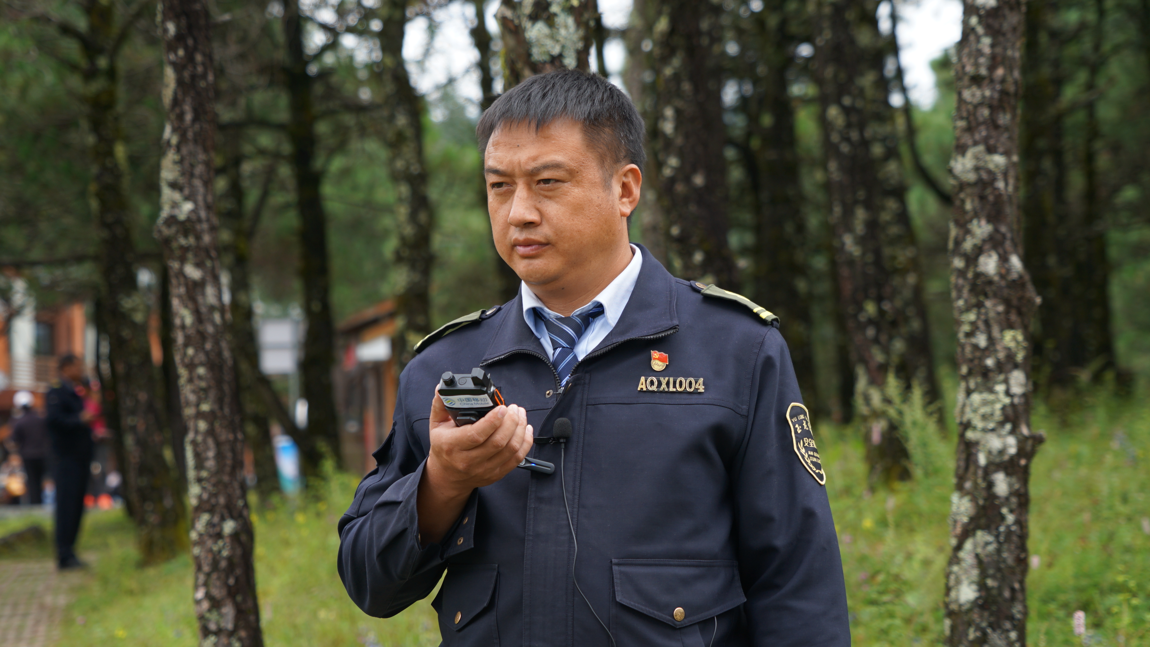 玉龙雪山工作人员用“和对讲”设备管理景区。(丽江融媒记者 木红豆 摄)