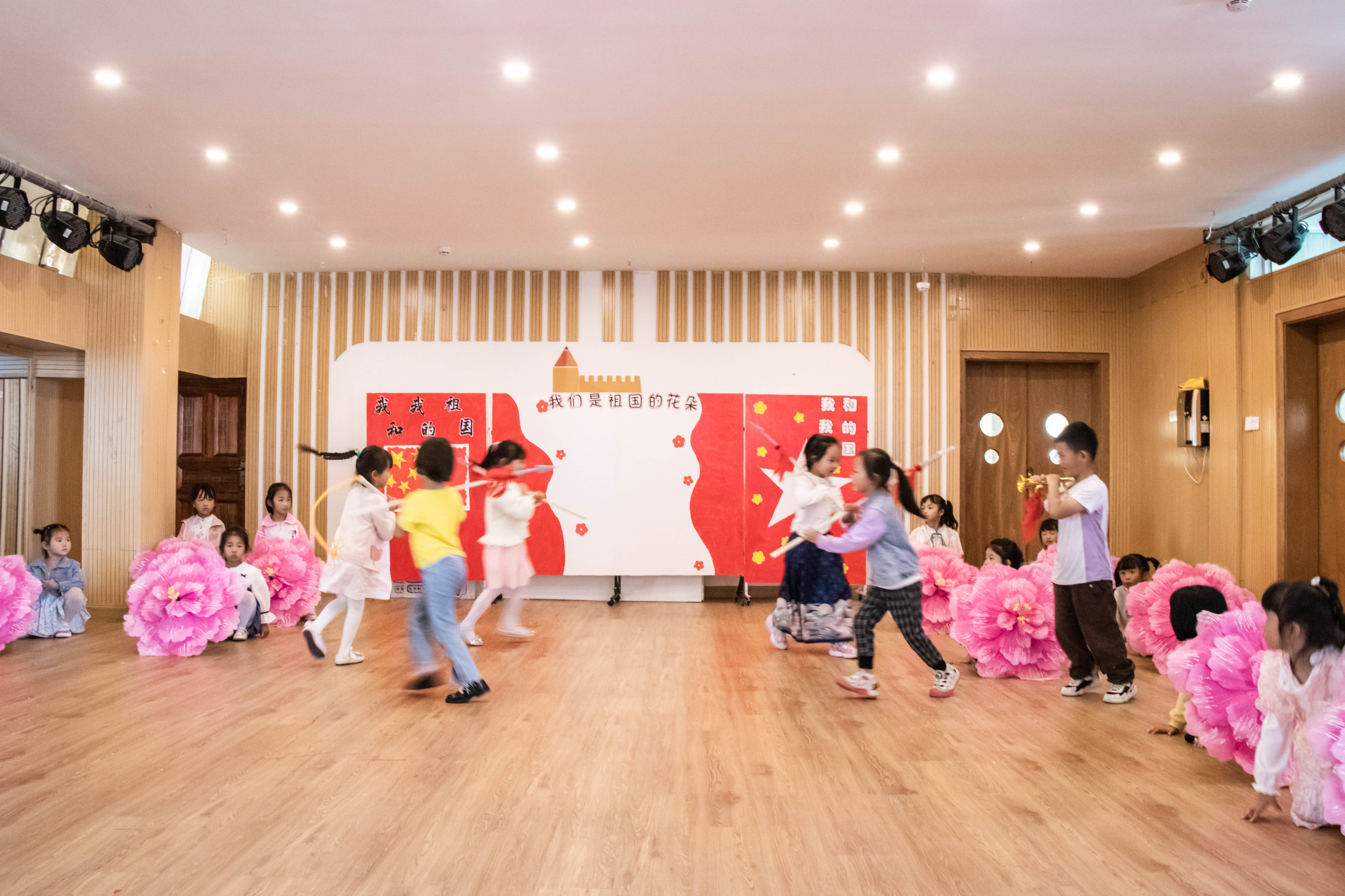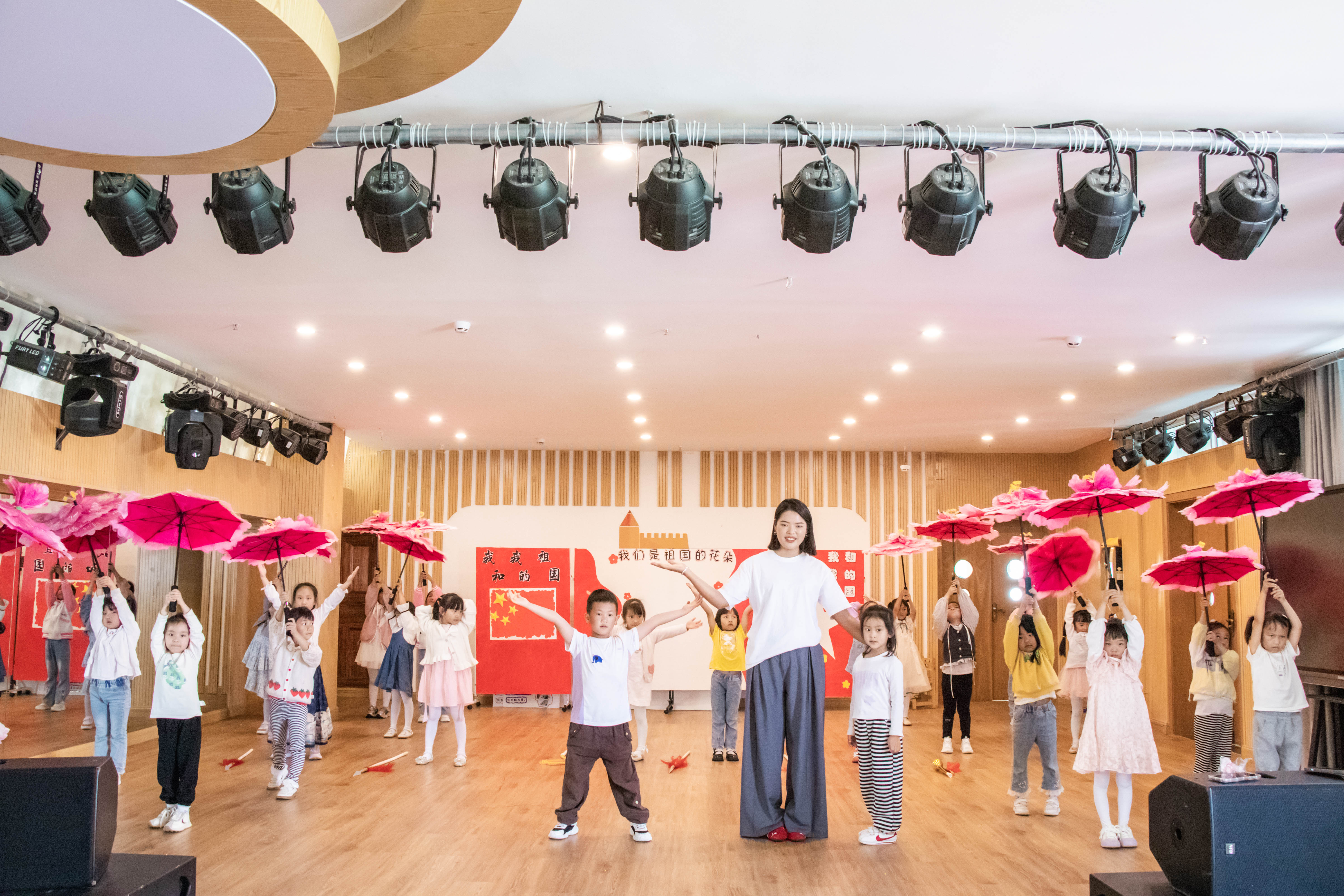 特蕾新幼儿园《妈妈教我画国旗》节目排练现场。(特蕾新幼儿园 供图)