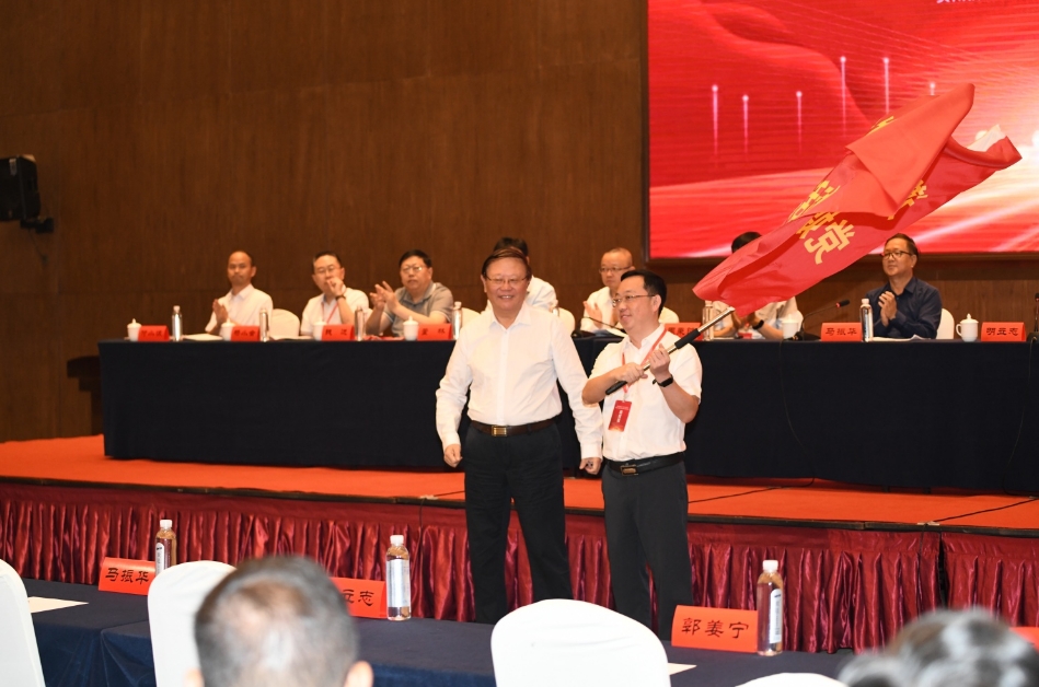 启动仪式上,明立志向遵义融媒传媒(集团)有限公司党委书记、董事长龚小松授旗。