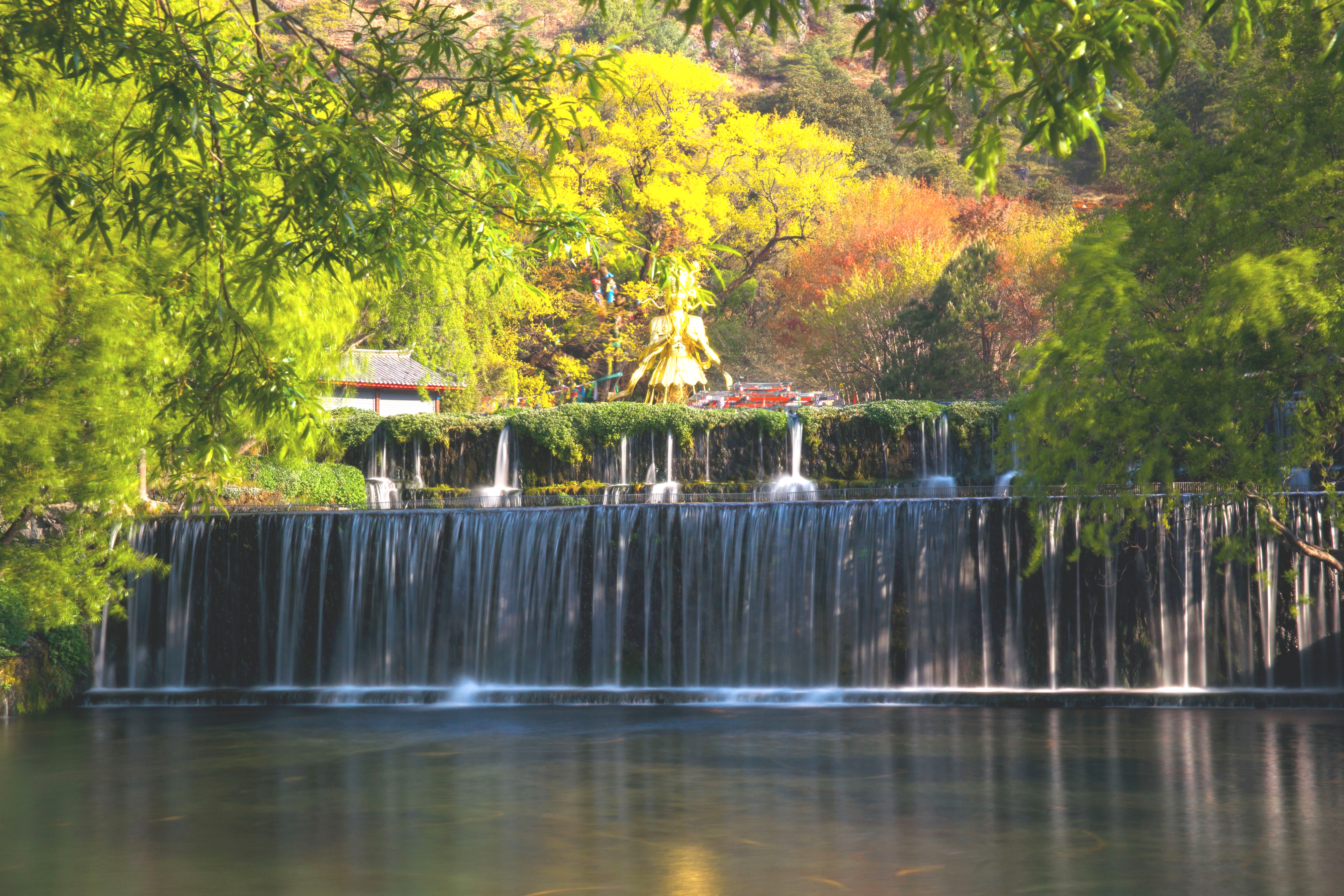 玉水寨景区一年四季都是不同的光景,每个季节都有独特的美。秋天的玉水寨是最好看的,秋天的玉水寨褪去了夏日雨水带来的潮湿,天气宜人,空气清新,温度适中,此时,景区内的树叶逐渐变色,从绿色转为绚丽的红色、黄色和橙色,犹如一幅幅美丽的画卷。景区民俗院门口的银杏叶也逐渐变黄了,游客可以漫步在林间小道上,欣赏着五彩斑斓的秋叶,感受大自然的魅力,非常适合户外活动,当然,拍照也是很出片的。