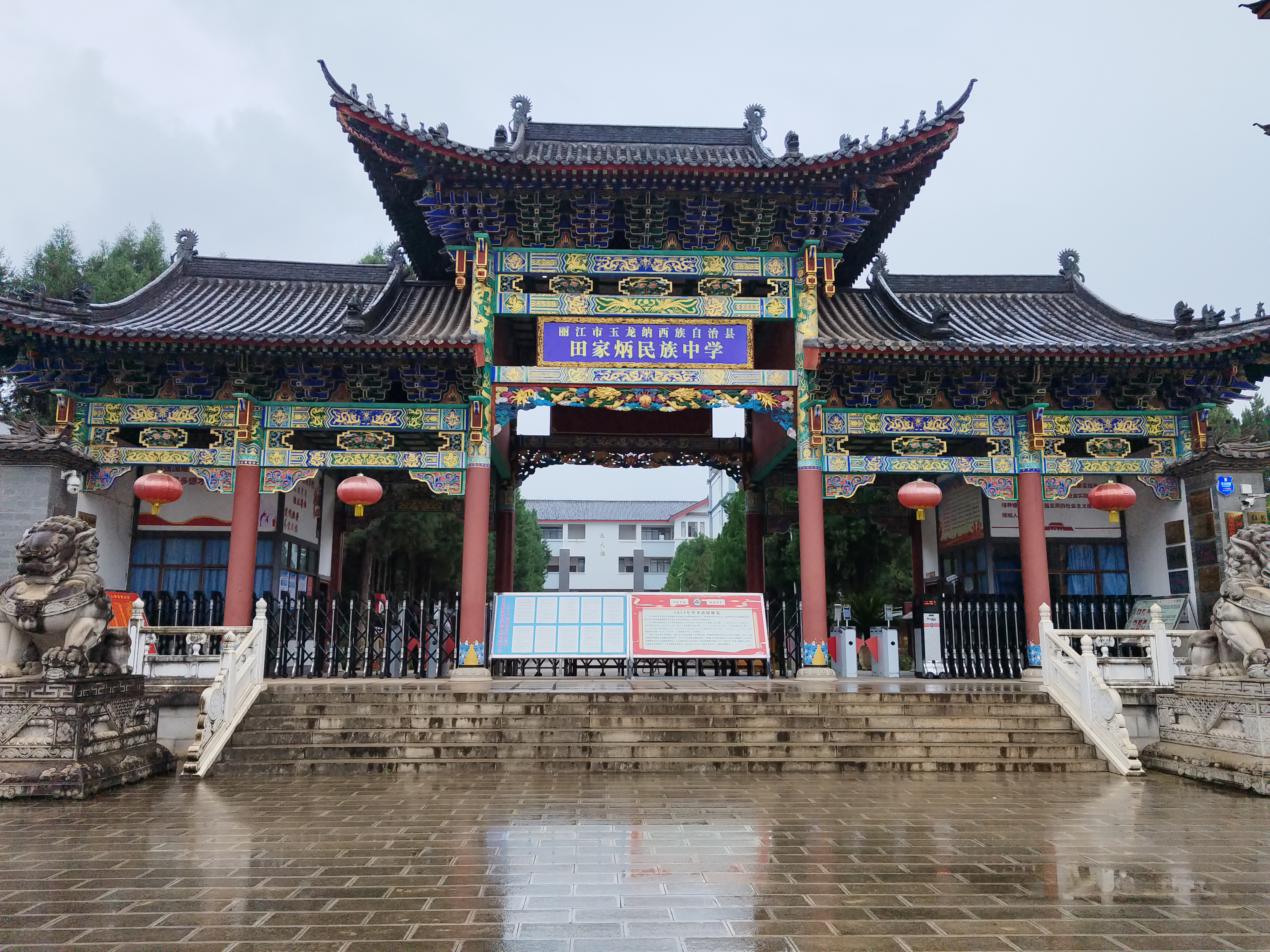 玉龙县田家炳民族中学学校正门口(供图)