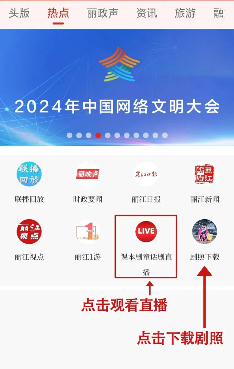 届时,丽江市融媒体中心将通过“丽江融媒”App进行现场网络直播,您可以通过以下步骤进入直播间,还可以下载高清剧照。