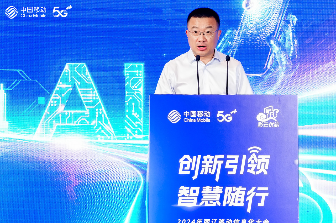 9月26日,“创新引领 智慧随行”2024年丽江移动信息化大会暨智慧酒店发布会上,中国移动通信集团云南有限公司丽江分公司党委书记、总经理金鑫进行发言。(丽江移动 供图)