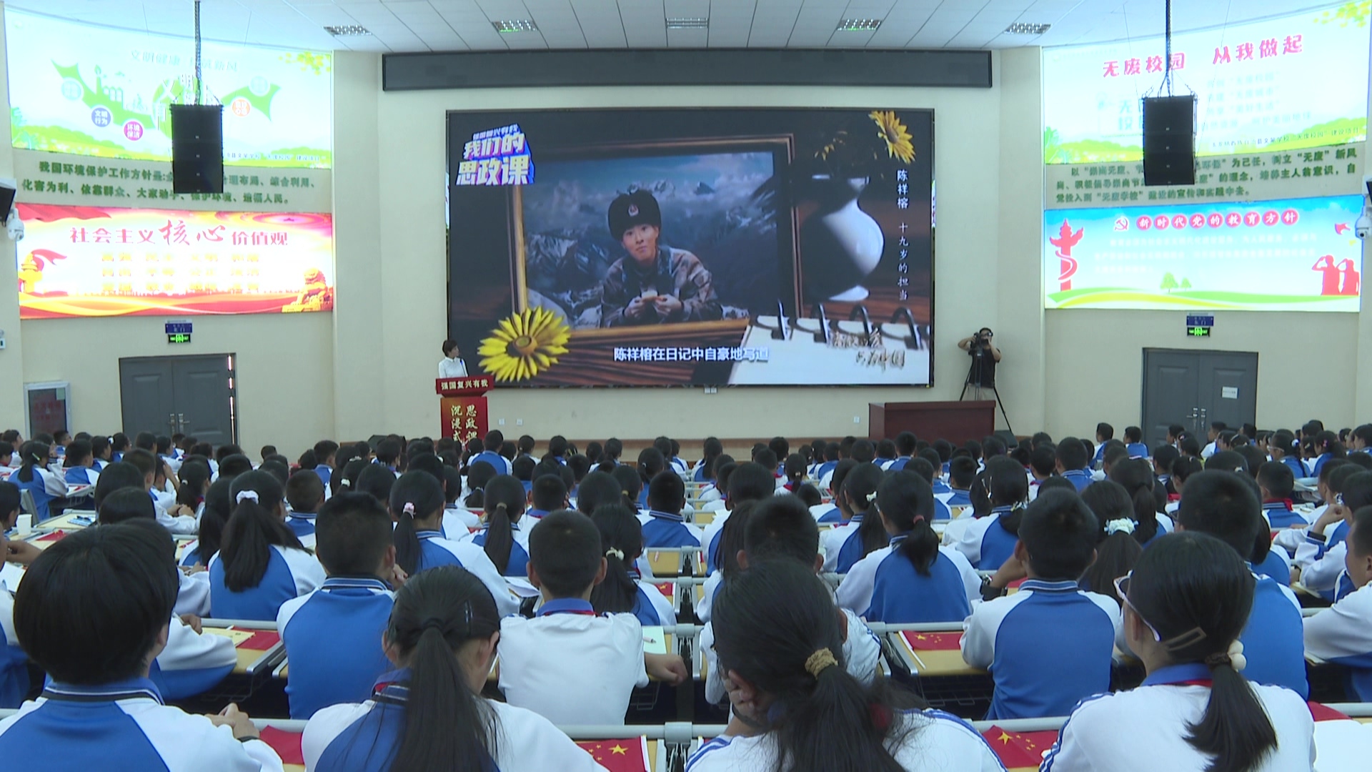 本次思政课由丽江市融媒体中心主持人进行串讲,青少年们在歌声中、在银幕上、在互动里、在言语间学习榜样事迹。一行行感动的泪水,如清泉般流淌在学子们的脸颊,那是心灵被触动的痕迹。一点点闪烁的星光,仿佛夜空中最亮的星,照亮他们前行的道路,给予他们希望与勇气。一双双渴望的眼睛,满含对知识的渴求、对未来的憧憬,在思政课的海洋中探寻着人生的方向。一句句殷殷嘱托,在心中汇聚、沉淀,如同星星之火,可以燎原。