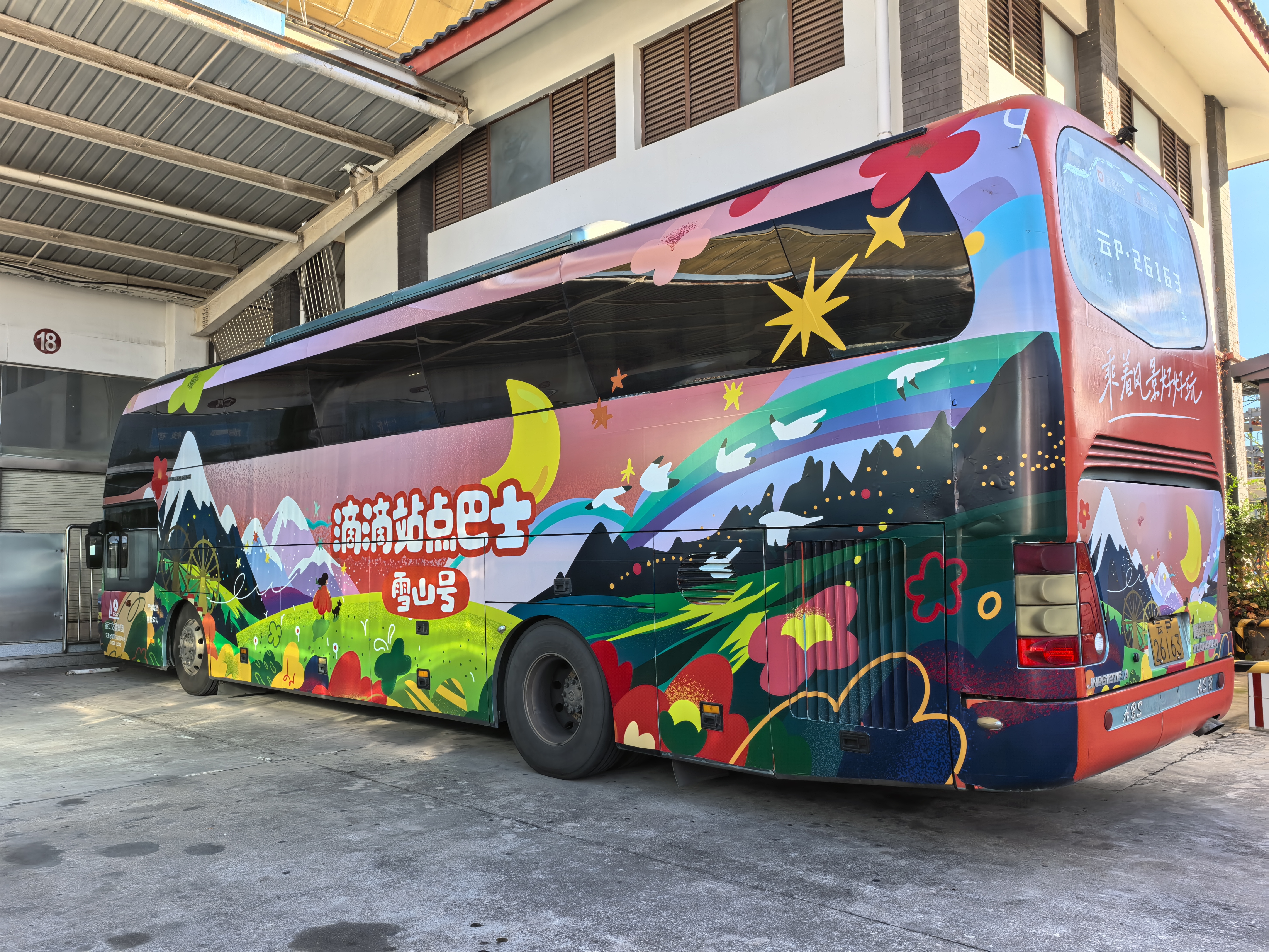 9月29日上午9点,在丽江交通运输集团的停车场,一辆绘有玉龙雪山、水车等丽江元素的“雪山号”巴士缓缓驶出车站,准备到站点接旅客。据了解,该巴士从丽江发往香格里拉,往返于丽江古城与独克宗古城之间。一路上,丽江古城、拉市海、独克宗古城等美景尽收眼底,这条路被誉为“美丽云岭天路”。