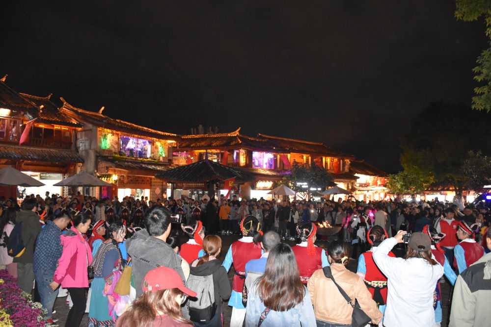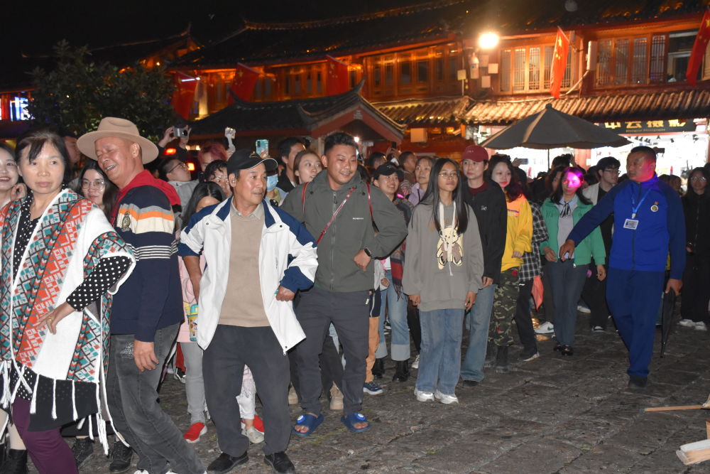 据了解,今年国庆假期,古城区大研街道办事处精心策划了“和美古城大研篇·中秋国庆 齐欢乐”文化系列活动,其中就有每晚19点至20点30分的篝火打跳。