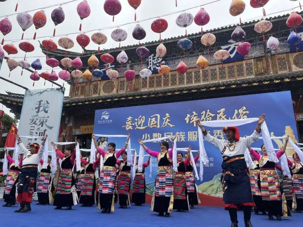 国庆期间,束河古镇热闹非凡,丰富多彩的民俗文化活动轮番上演。10月4日,一场展现丽江文化及魅力的少数民族服饰秀在四方听音广场拉开帷幕。