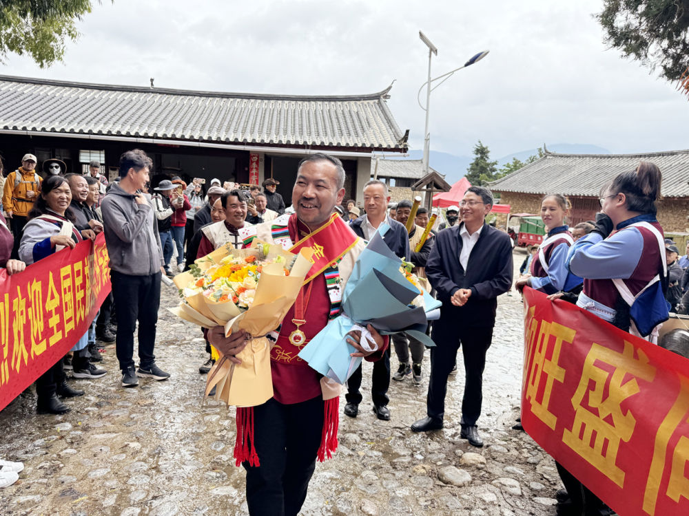 10月5日,荣获“全国民族团结进步模范个人”荣誉称号的玉湖村党总支书记、村委会主任和旺盛回到玉龙县白沙镇玉湖村。村里的父老乡亲们欢迎和旺盛载誉归来。