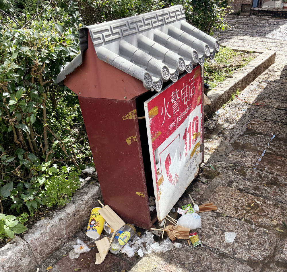 10月6日,记者在束河景区内拍摄到的不文明行为。(王璠 摄)
