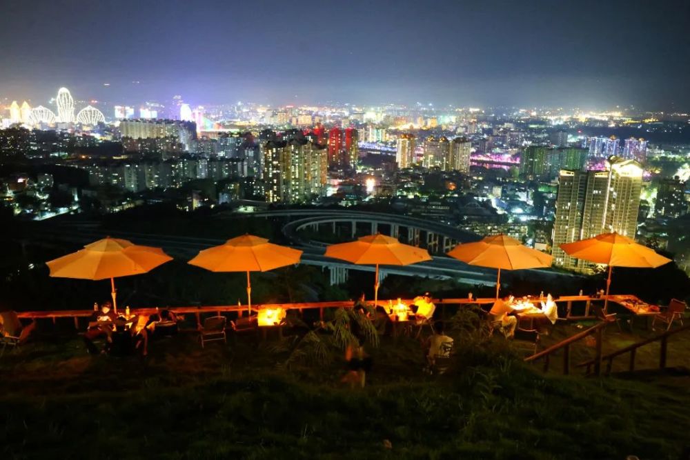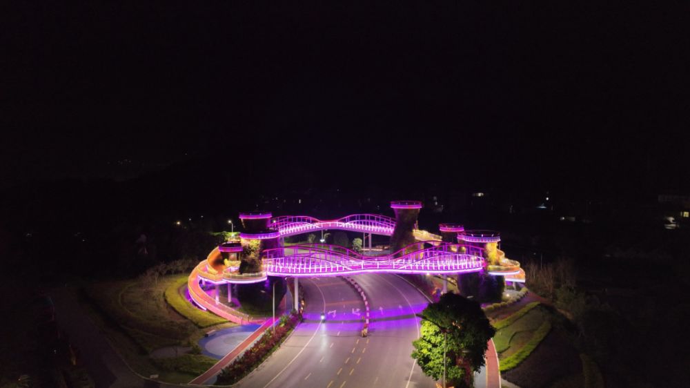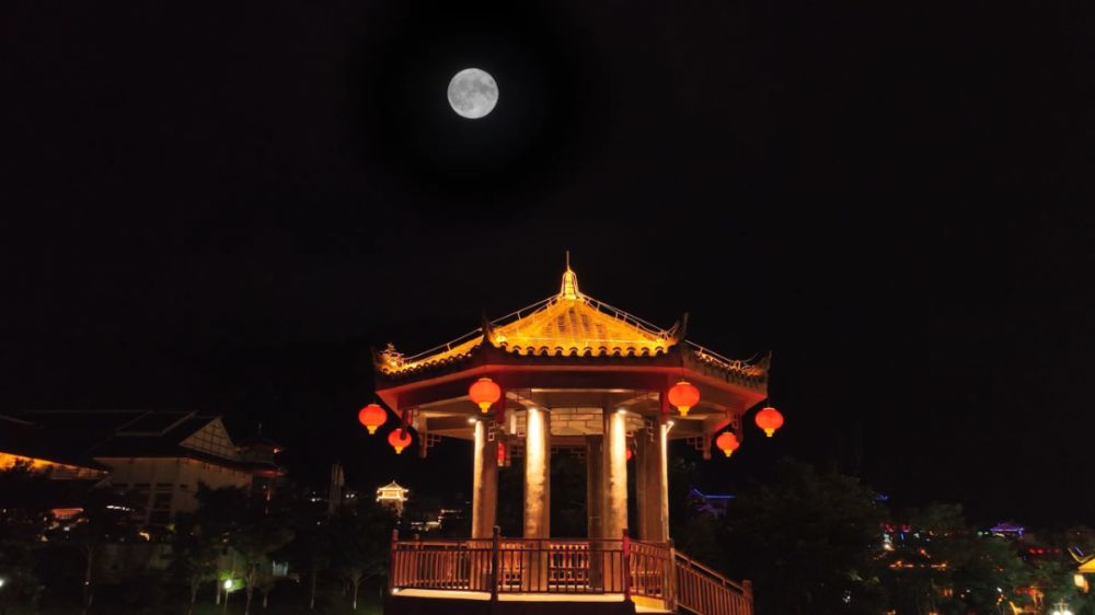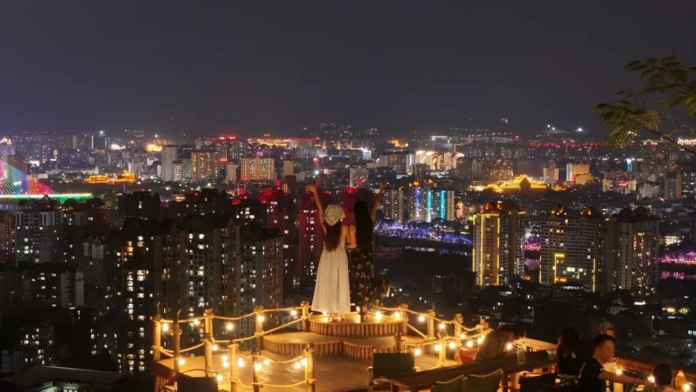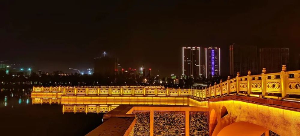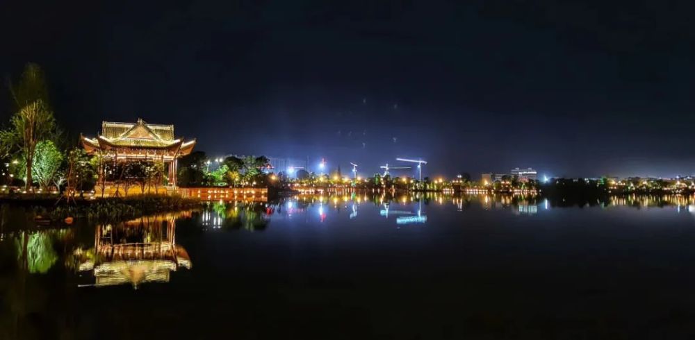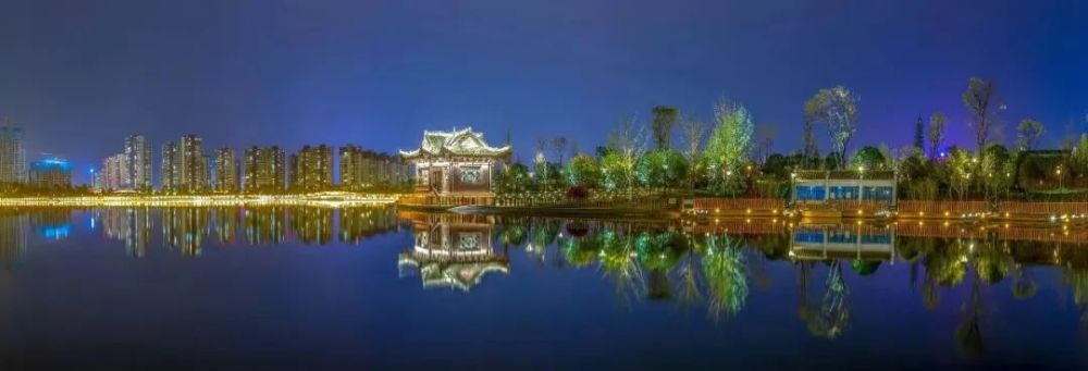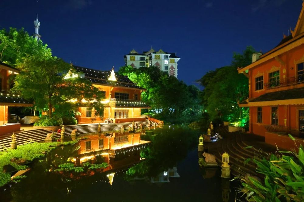 公园内的音乐喷泉和水上灯光秀齐上阵