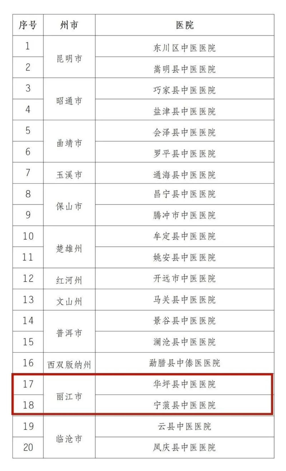 云南省卫生健康委关于云南省2024年第二轮县级公立中医医院综合服务能力提升达标验收结果的公示
