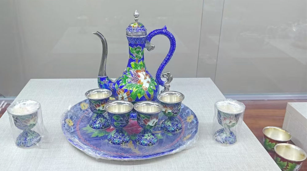 永胜珐琅银器是丽江传统的手工艺品,以其精湛的工艺和独特的文化寓意而闻名。在永胜县保留并传承至今的银胎掐丝珐琅工艺,是将玻璃质釉料与金属烧结在一起,经过制胎、掐丝、上釉等多重工序,制作首饰、酒器、茶器等制品的传统技法,具有颜色丰富、色泽稳固、经久耐用的优点,具有很强的艺术表现力。