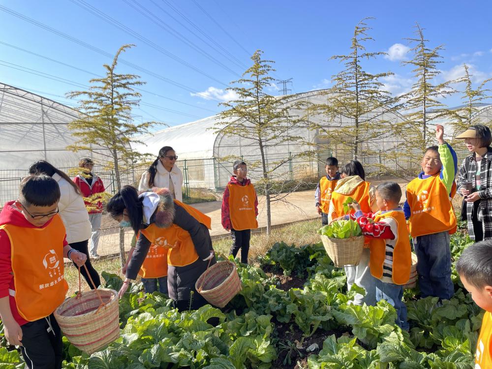 参加研学的小学生,在开南菜地进行农事体验。(供图)
