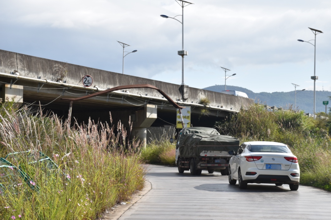 限高杆位于高速公路高架桥下方,是保障桥梁安全、防止超高车辆撞击桥梁的重要设施。然而,由于年久失修,限高杆已经失去了原有的功能。这条道路又是很多周边村民进出城区的重要通道,来往车辆不少。面对这一紧急情况,记者也就此情况向相关部门进行了反映。