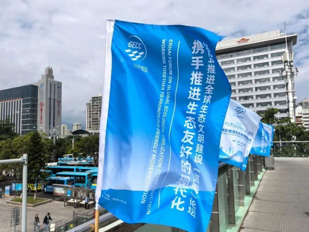在机场、慢谷路口、兴盛桥南北面等地,单立柱上已安装好了2024洱海论坛公益广告。高耸的宣传标语分外醒目,让人换个角度感受生态自然之城的魅力,突显展示大理原始而纯粹的自然美景,共同感受生命的和谐,链接多元的文化。