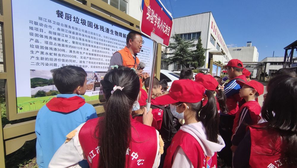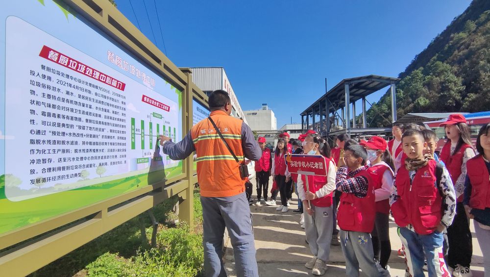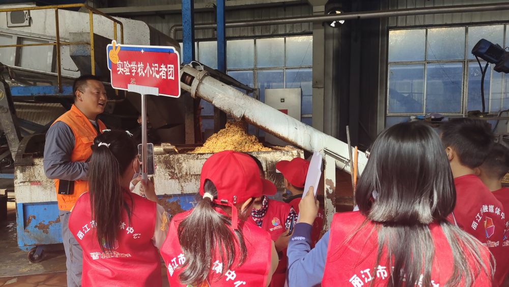 丽江市融媒体中心小记者团,行走的思政课系列课程走进滇西北生态循环经济产业园的餐厨废弃物处置中心,了解生活中的餐厨废弃物怎么变废为宝。(杨敏 摄)