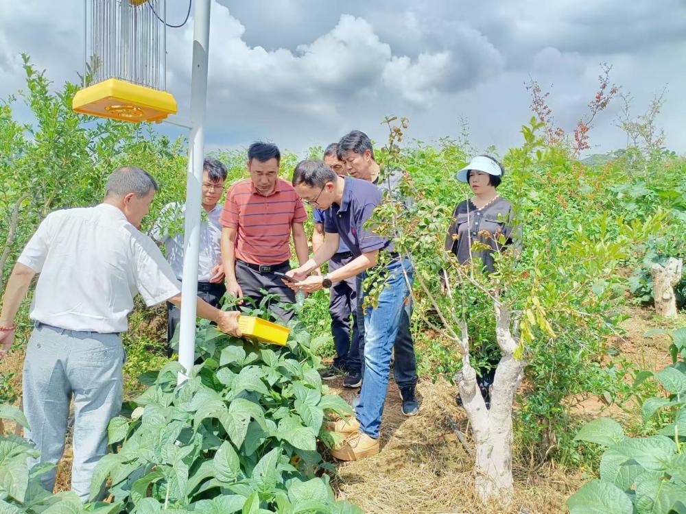 民革云南省委在程海镇海腰昔拉湾村验收太阳能杀虫灯安装工程。(供图)