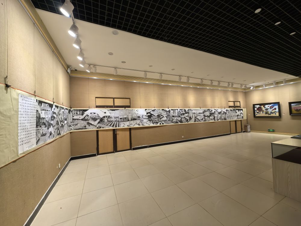 其中,一幅主题为“奋斗百年路 启航新征程”为主题的黑白画格外引人瞩目。该幅作品长14.5米,以绘画的形式诠释了新中国成立以来中国人民从站起来、富起来到强起来走向世界的辉煌历程。