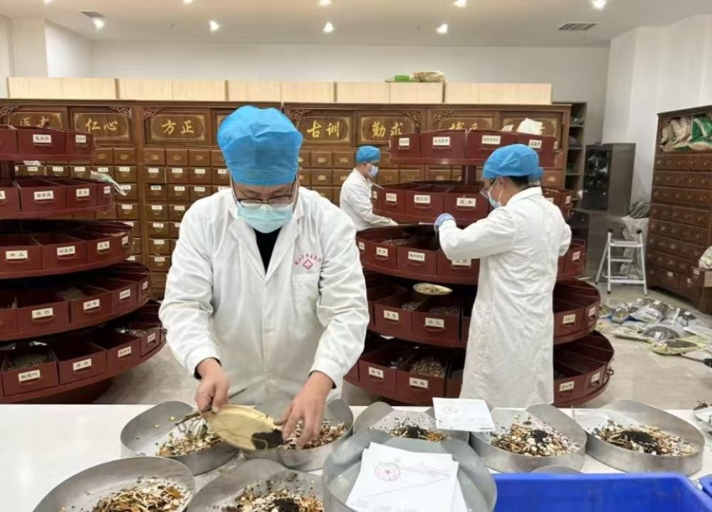 丽江市中医医院医生为患者配药。(供图)