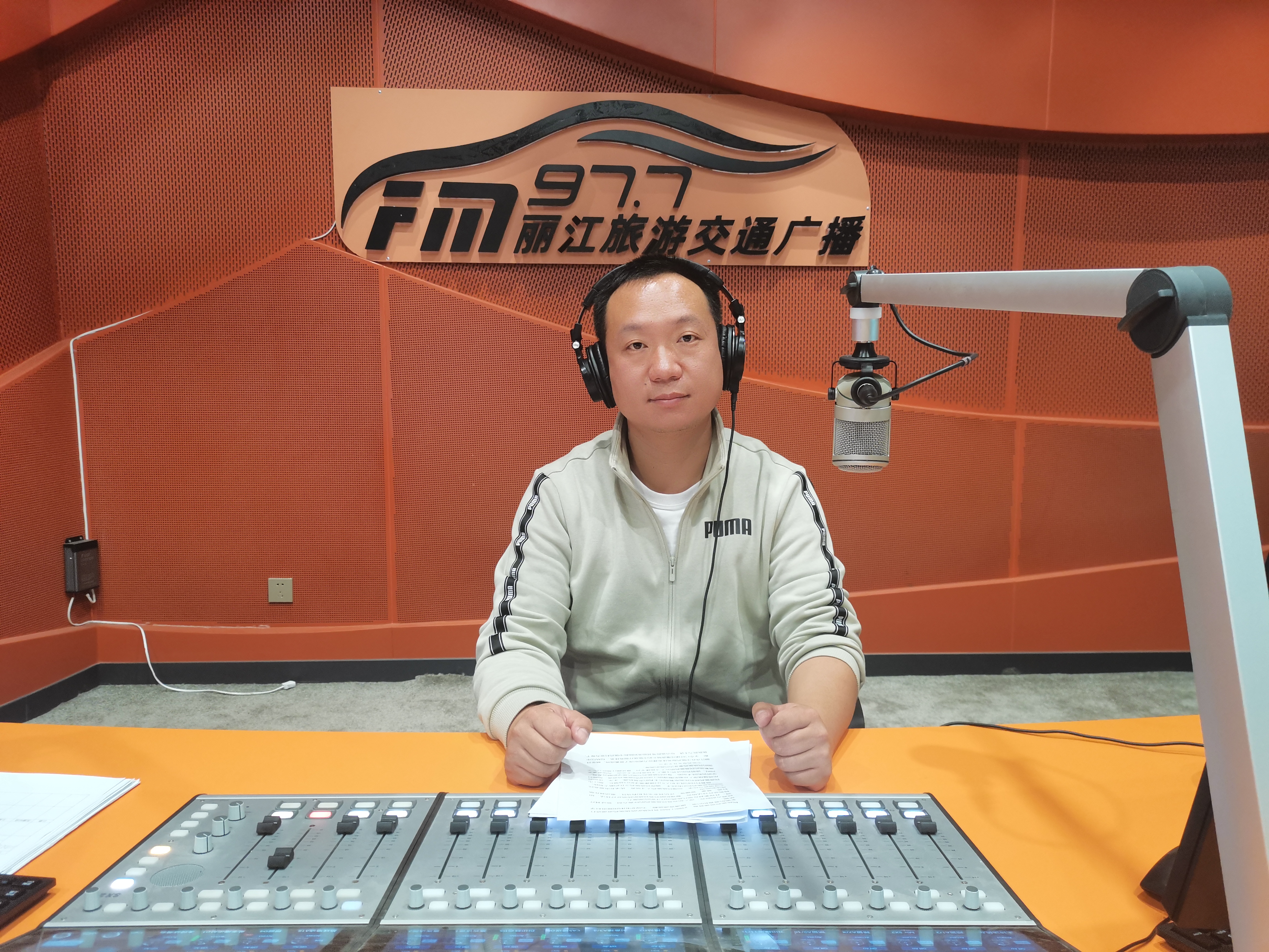 10月22日,丽江市中医医院科研教学部负责人何文俊走进旅游交通直播间参与直播访谈。(李婧 摄)