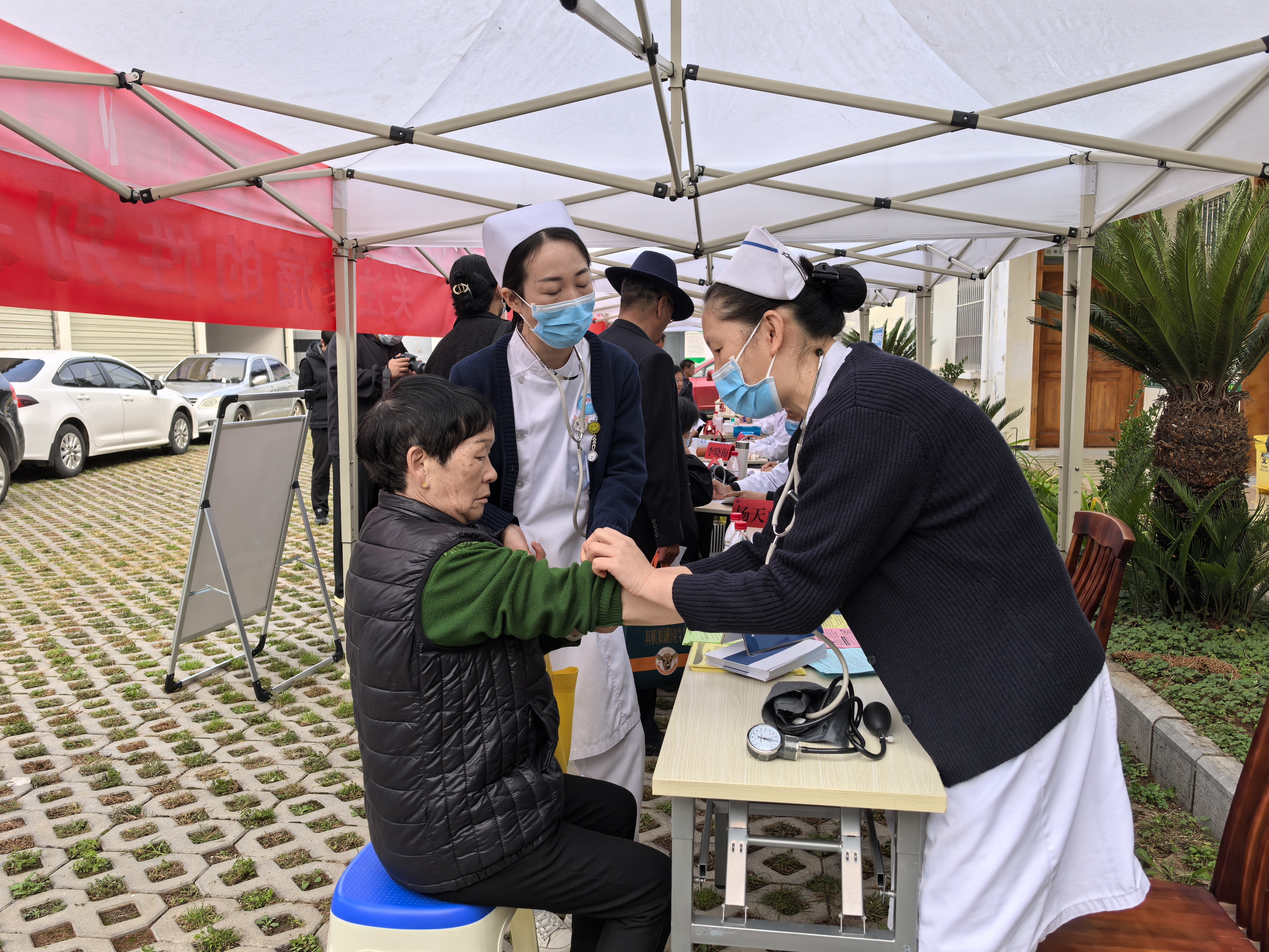 护士为患者量血压。(丽江融媒记者 秦文静 摄)