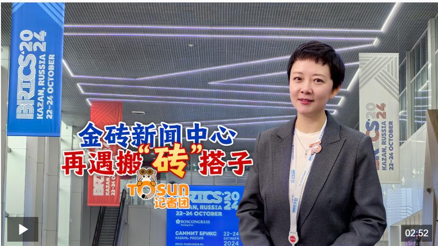 当地时间23日上午,金砖国家领导人第十六次会晤在喀山会展中心举行,此次峰会的新闻中心也设在这里。