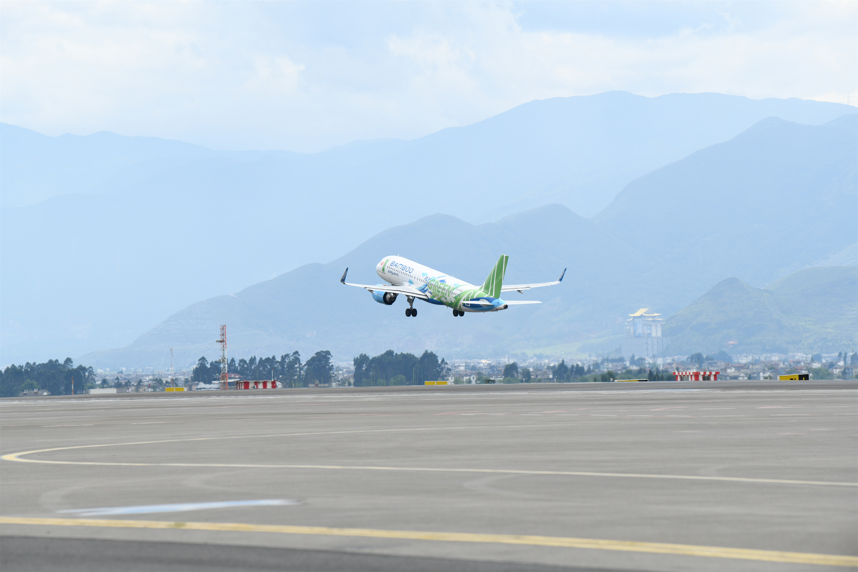 航班从丽江三义国际机场起飞。(丽江融媒记者 赵庆祖 摄 )